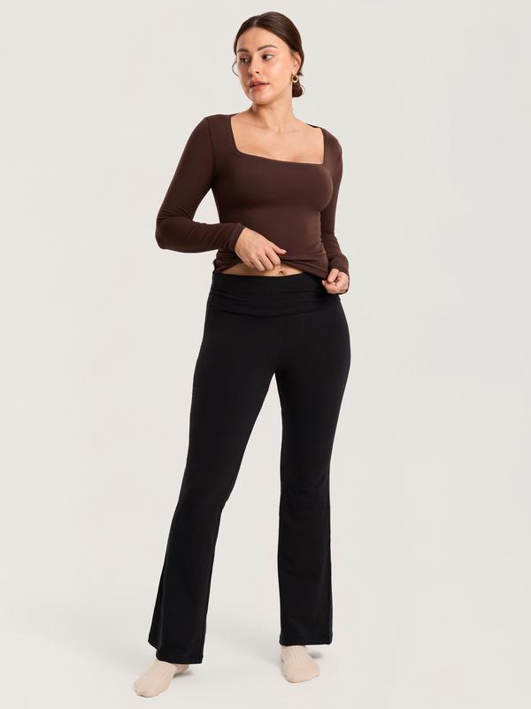 Stick to your pre pregnancy size mamas! #yogapants #flarepants #foldoveryogapants #comfyclothes @Momanda clothing