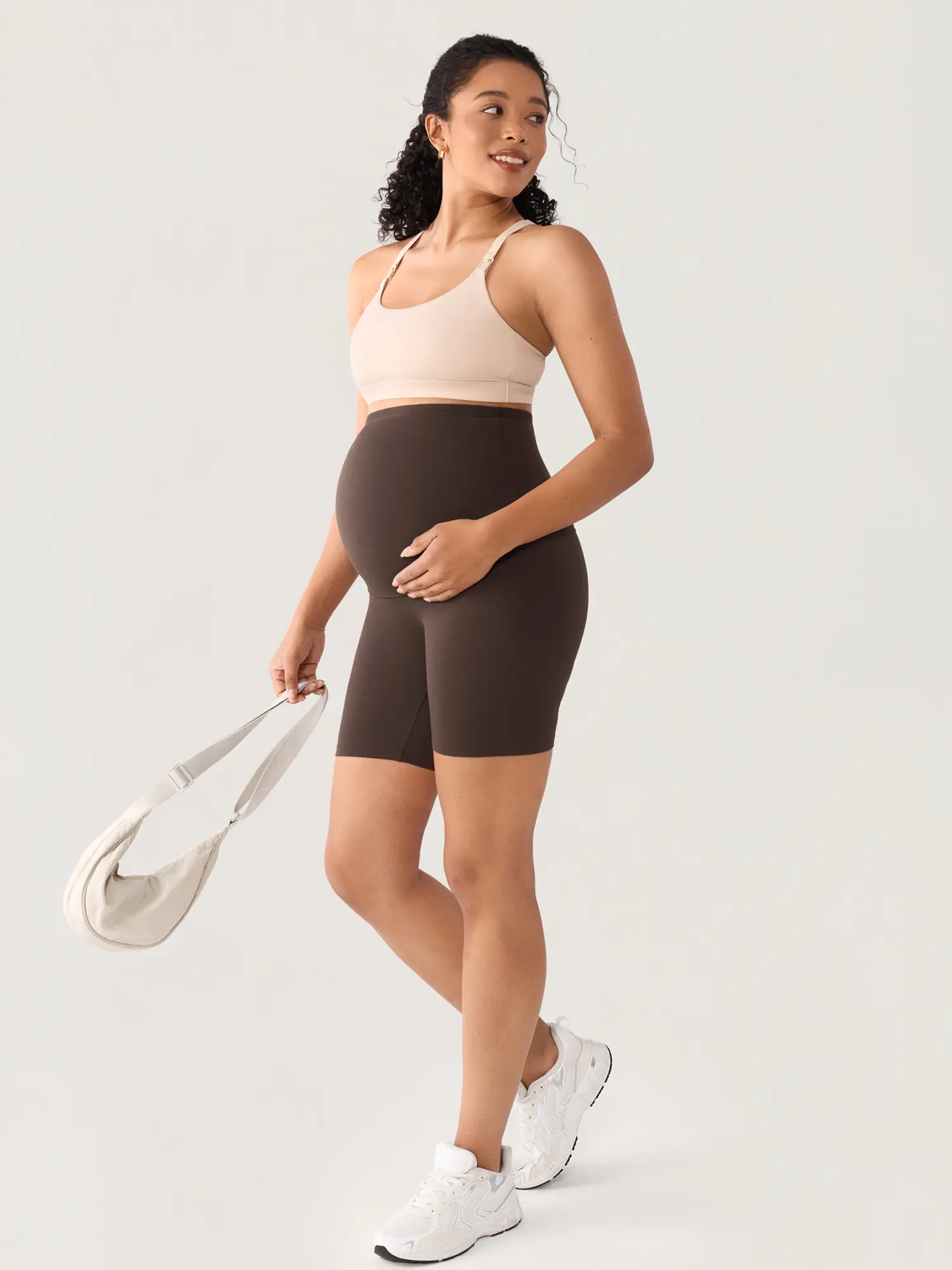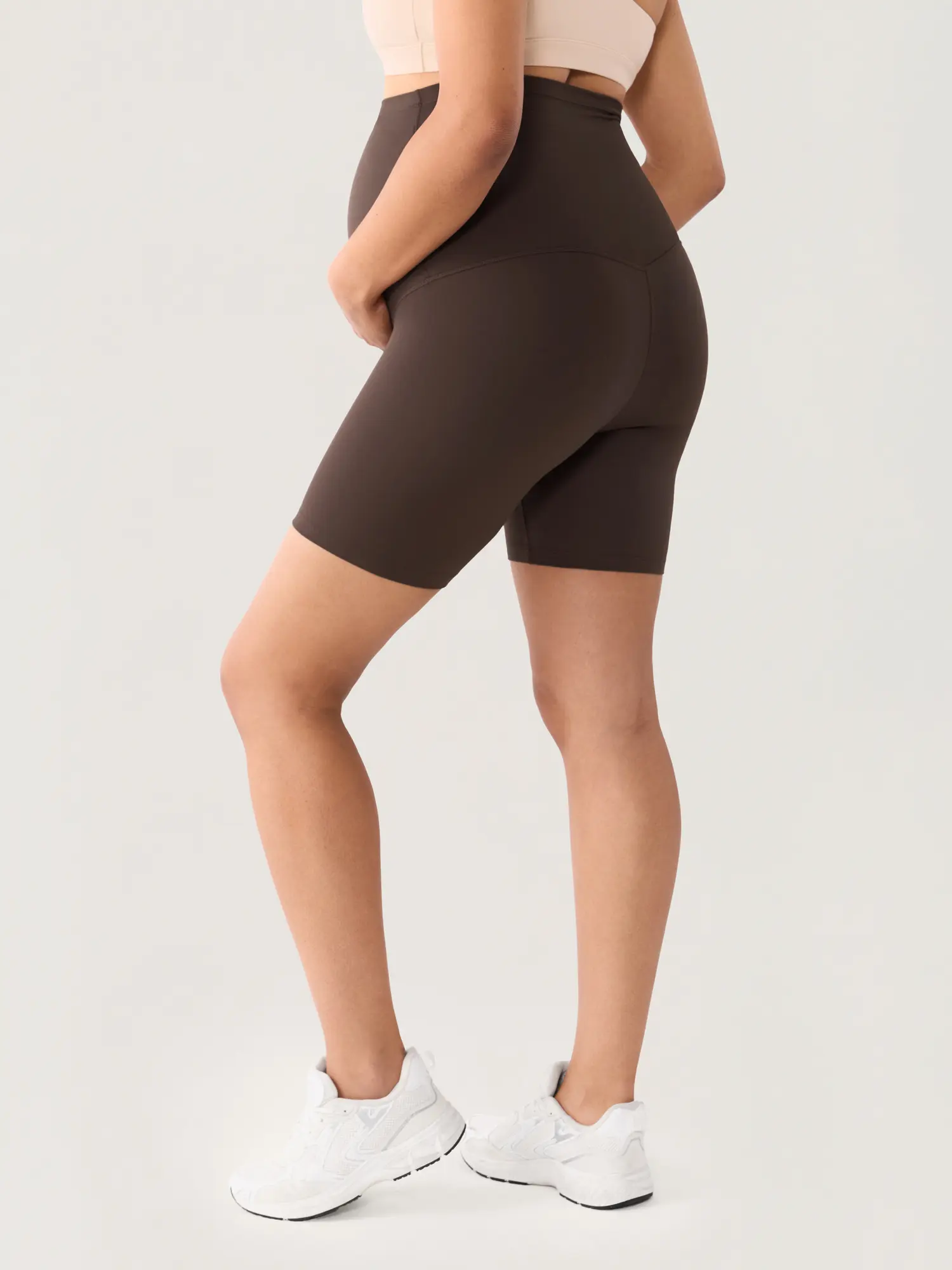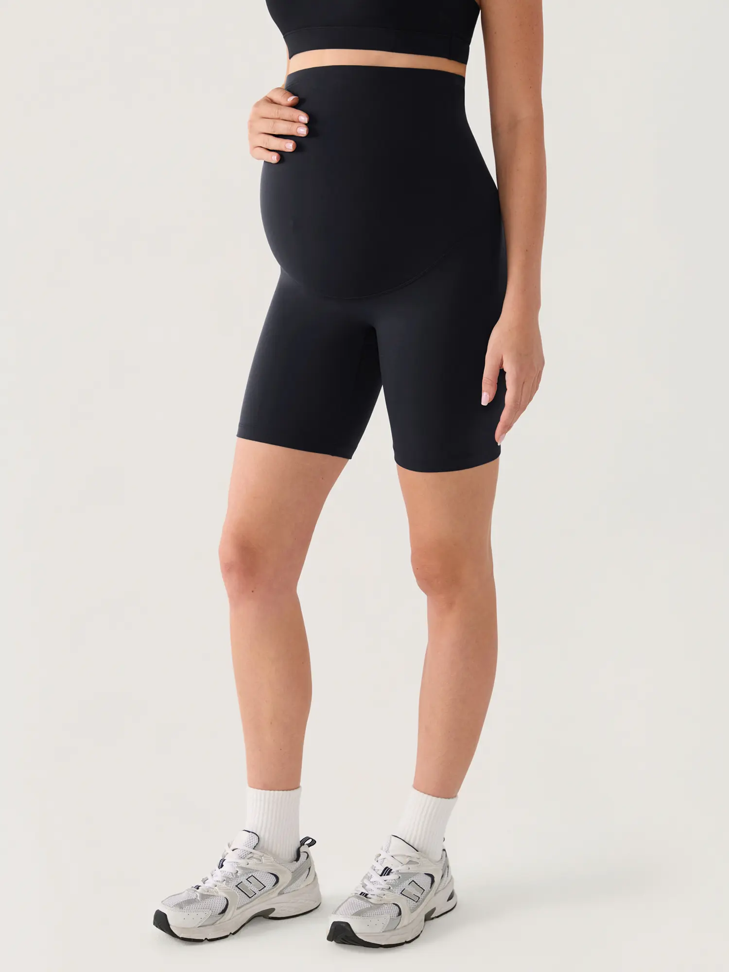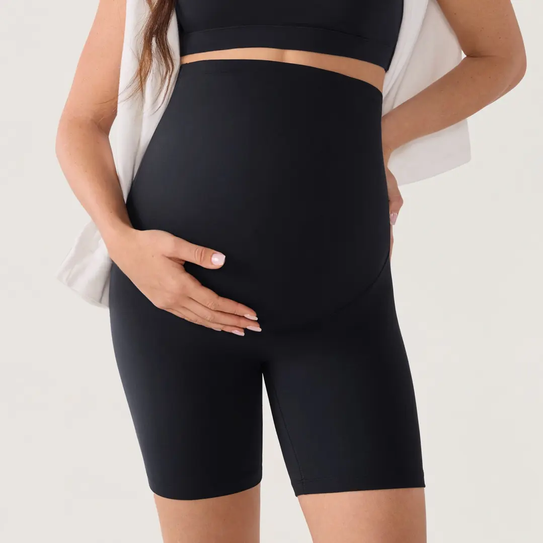 Stay active and stylish with our high-waisted pregnancy shorts. Designed with no front seam, they offer full belly support and a smooth, pocket-free silhouette. The 6-inch inseam allows easy movement, perfect for yoga, daily wear, and beyond.