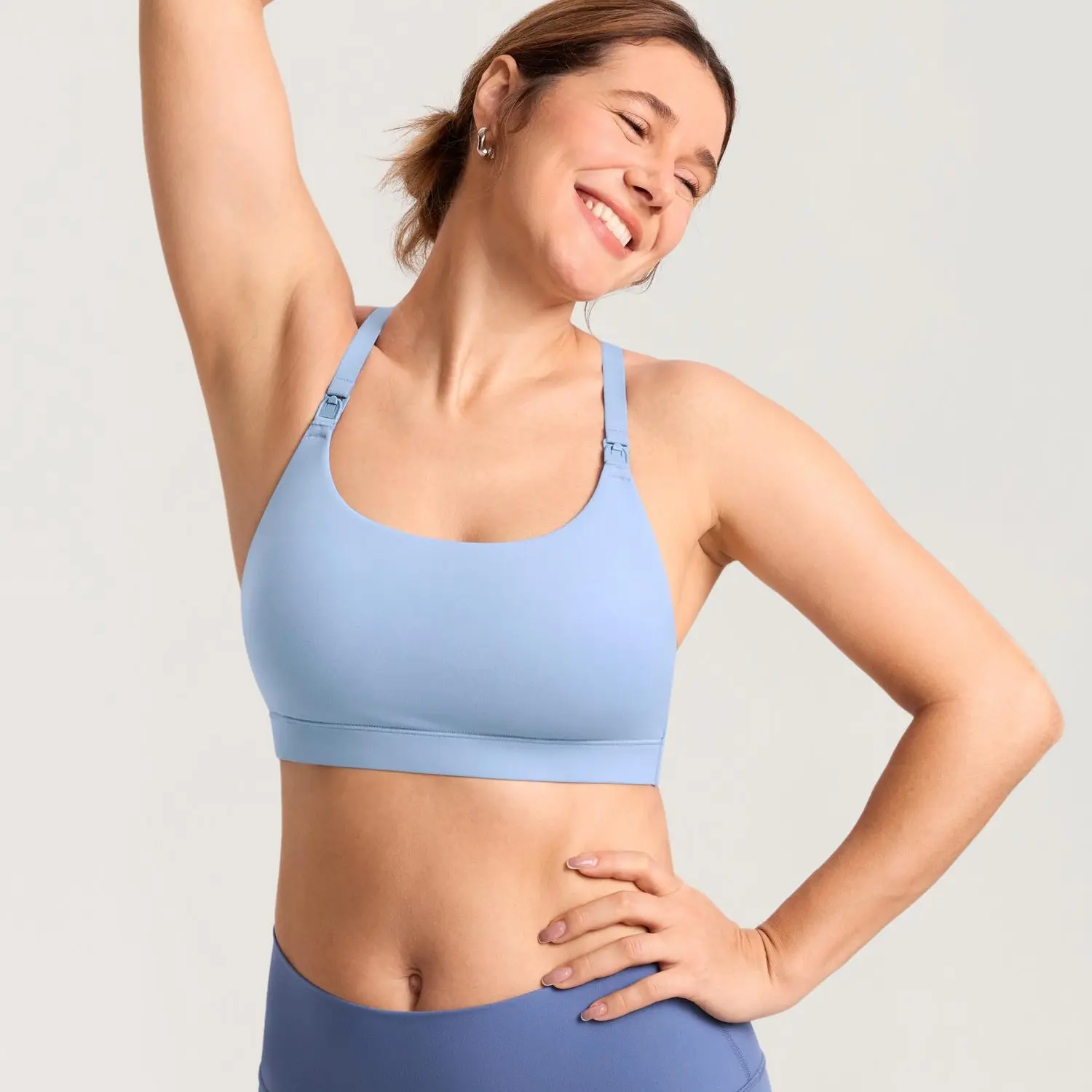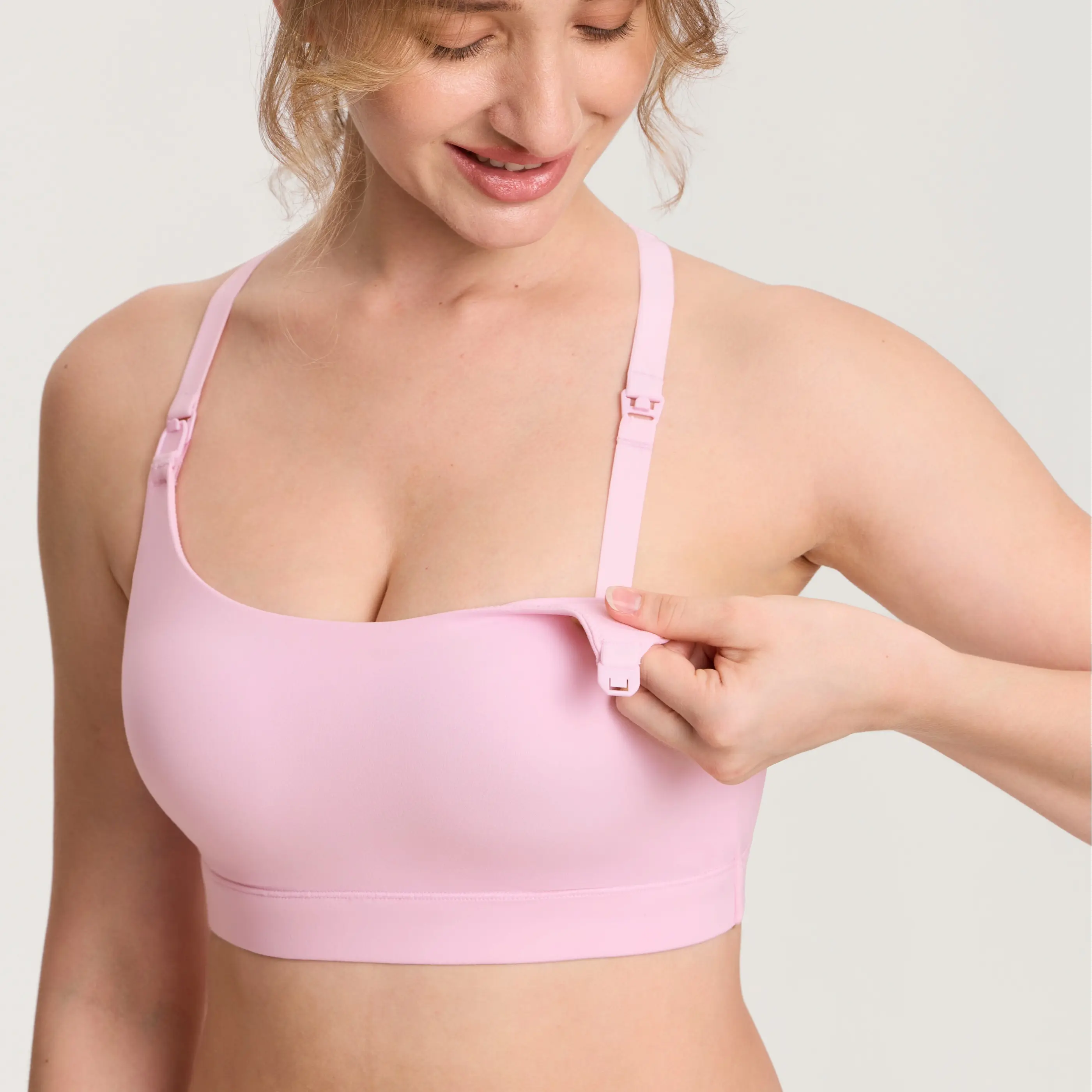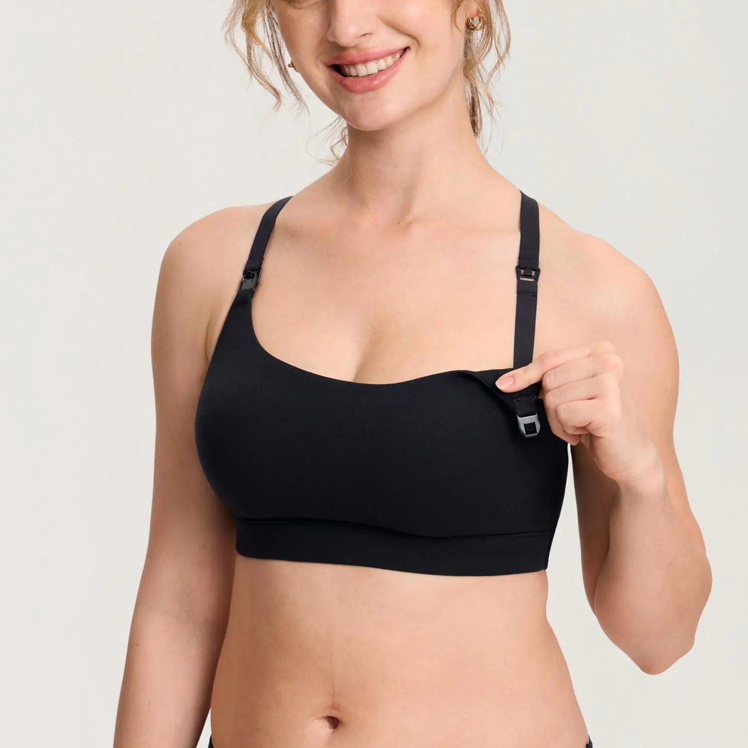 Y-back support moves with you in buttery comfort; ready to nurse in seconds—no outfit change needed.