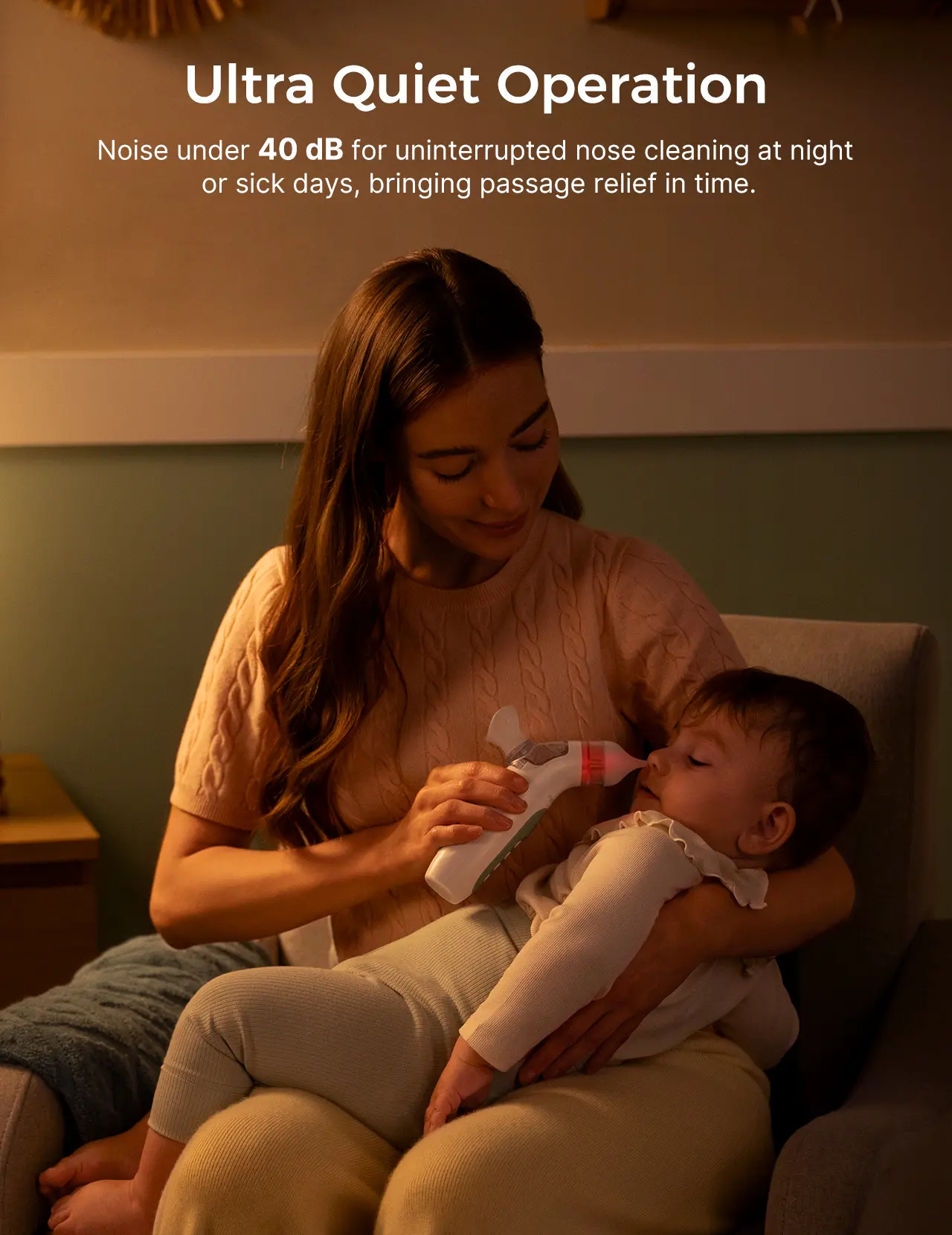 This nasal cleaner comes with soothing light and music, creating a calming environment. It helps soothe your baby during the cleaning process. The design focuses on comfort and ease of use, making it an essential tool for parents. Trust Momcozy for a reliable and soothing nasal cleaning experience.