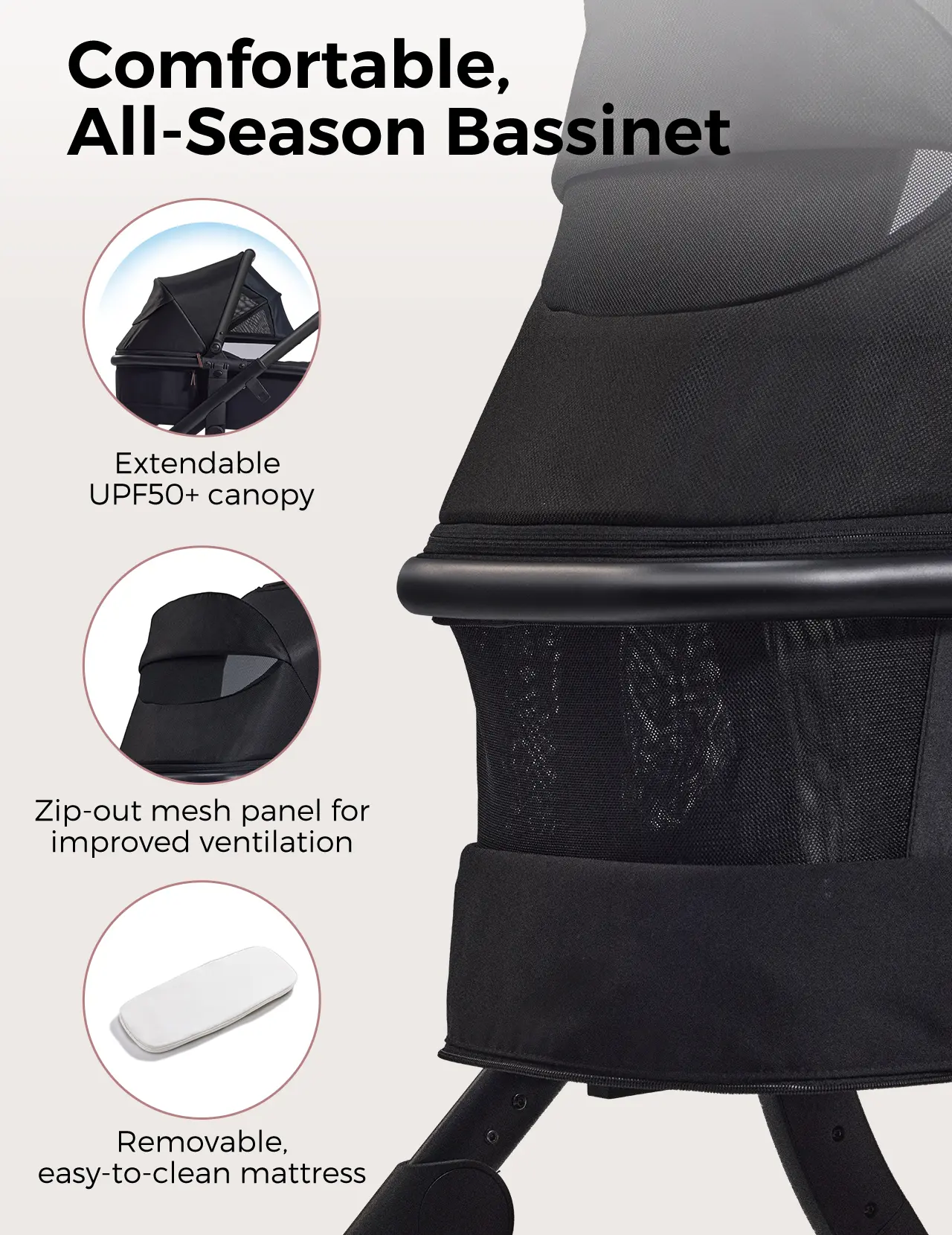 ·Comfortable, All-Season Bassinet: Keep your newborn cozy and protected with an extendable UPF50+ canopy and a zip-out mesh panel for ventilation; cushioned liner and removable mattress create a soft, safe sleeping environment
