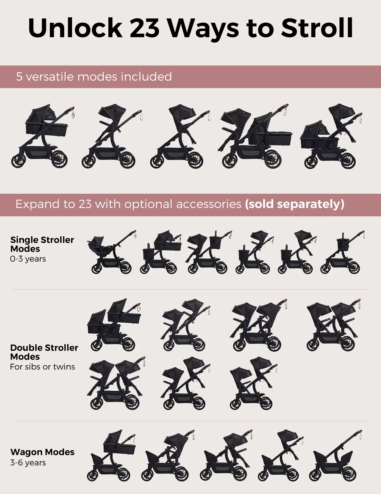 ·Unlock 23 Configurations: This versatile baby stroller converts easily from a single stroller to a double stroller and to a wagon to grow with your baby and family from birth up to 6 years old; supports 23 configurations with a variety of accessories (sold separately)