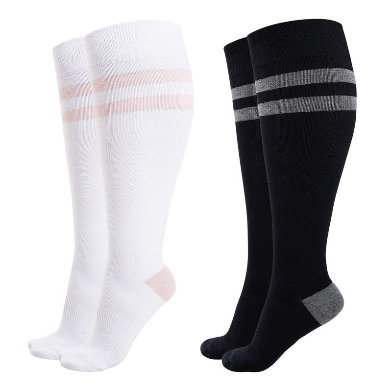 • Wide Calf Design: Fits comfortably around the ankle. • Knee High Length: Provides full support from the ankle to the knee. • 15-20mmHg Support: Ideal for various needs, from pregnancy to travel.