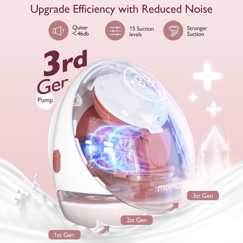 ·Stronger & Quieter: Our 3rd Gen Pump boasts an upgraded pumping efficiency with reduced noise. It supports up to 15 suction levels under every pattern. Enjoy a more comfortable, stronger suction and efficient pumping experience with Momcozy Upgraded Mobile Flow!