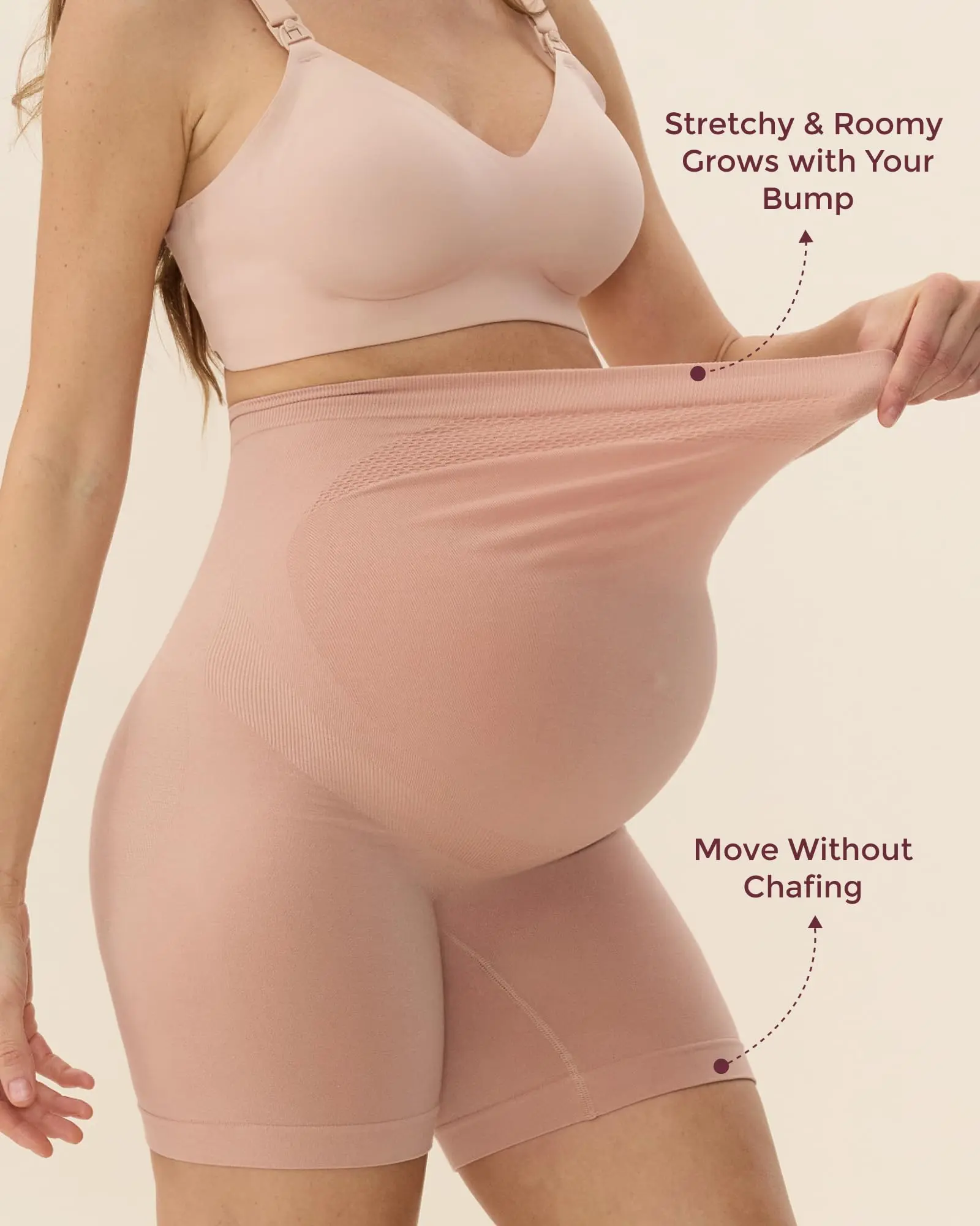 ·Chafe-Free Comfort: Designed as maternity shapewear shorts, the knee-length cut helps reduce inner thigh friction and prevents rubbing while walking, sitting, or staying active for reliable all-day comfort