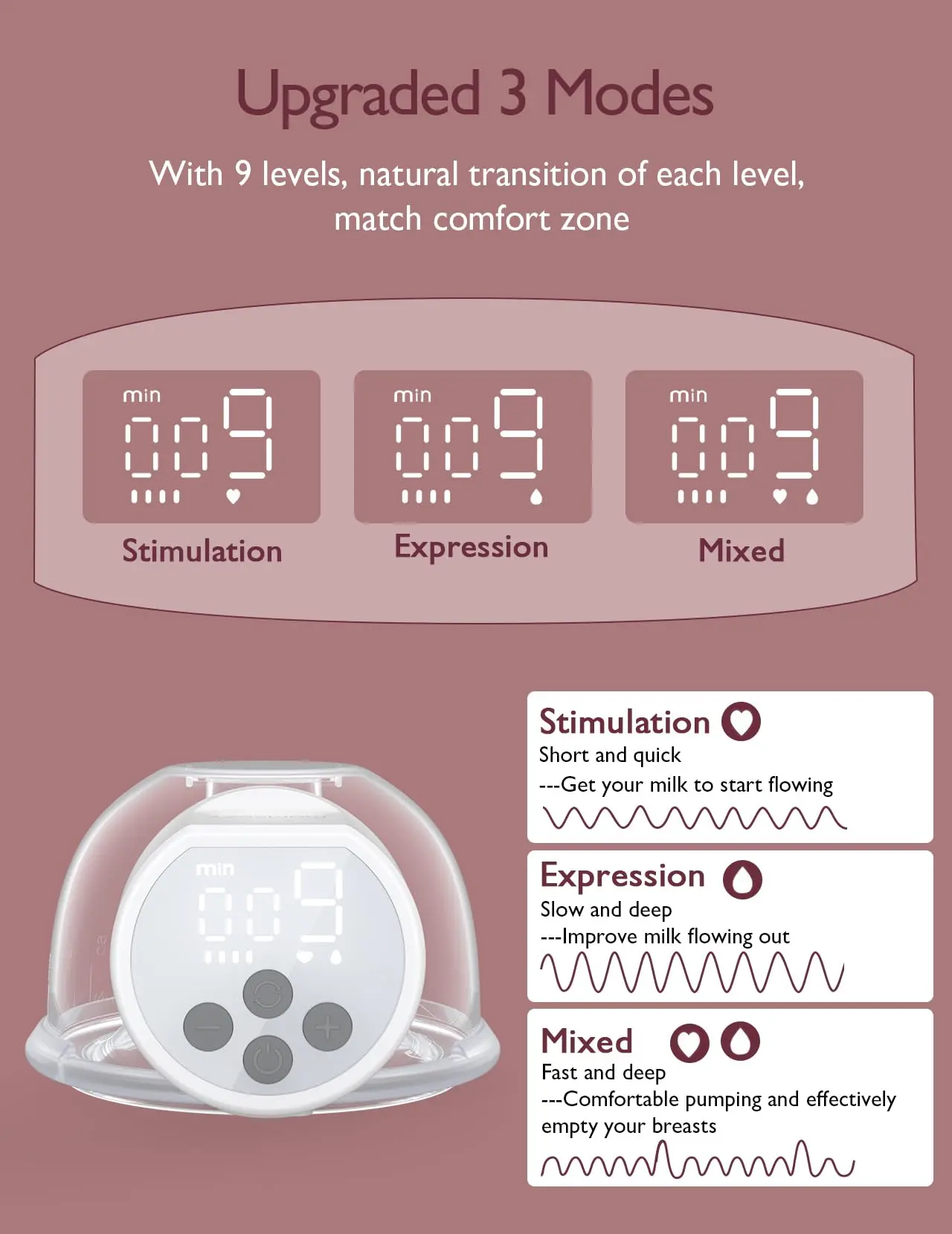 Enjoy two modes and nine levels of pumping power. This flexibility allows you to customize your experience based on your needs. The pump's design ensures comfort and efficiency, making it ideal for both home and travel use. Experience the convenience of a portable breast pump today!