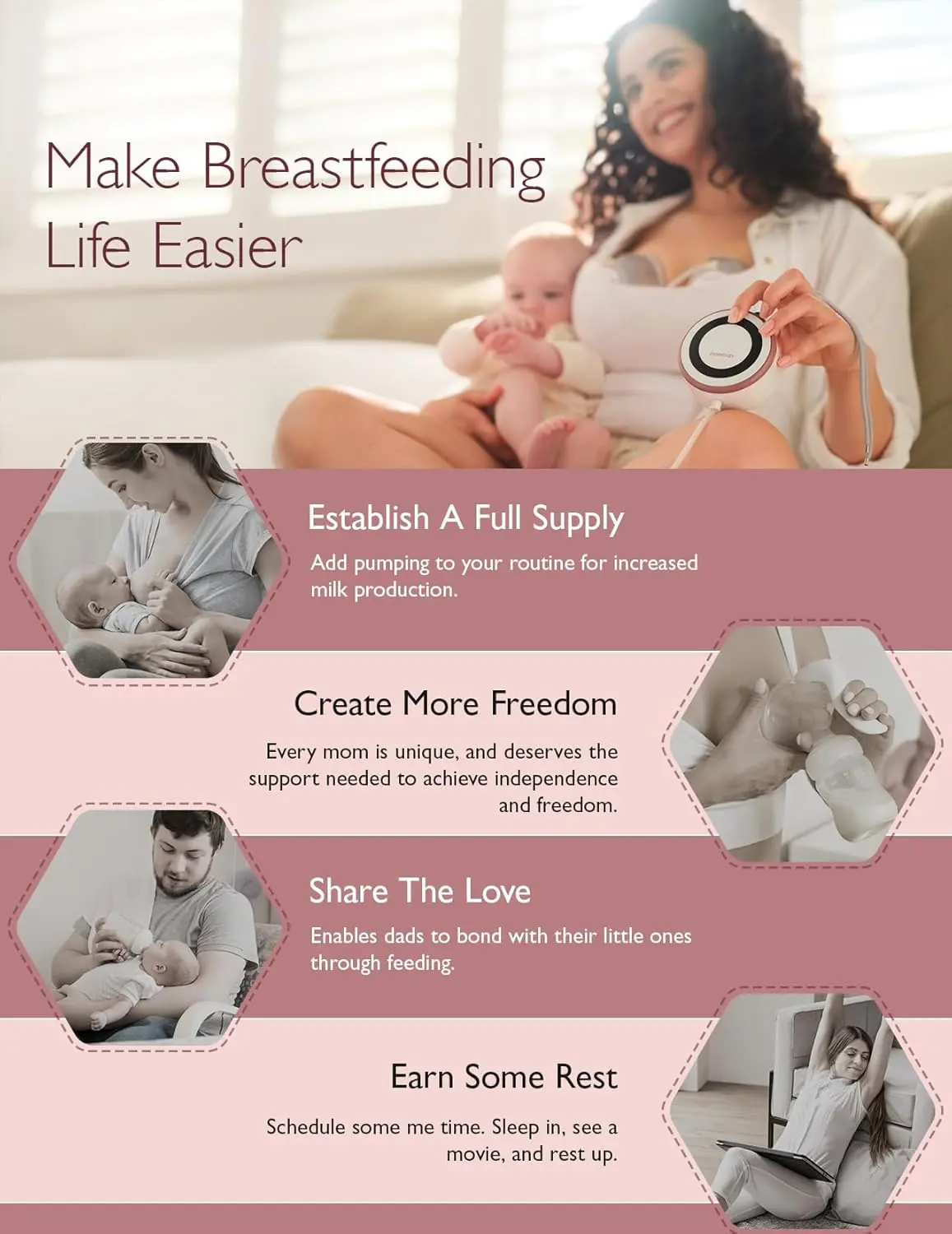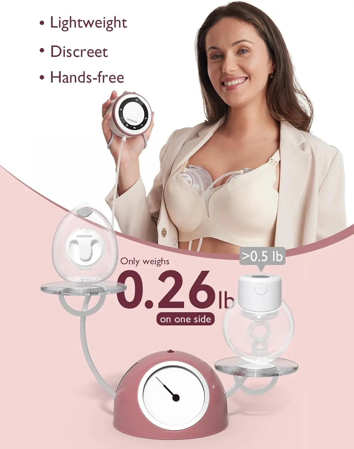 Ā·Express like no one is watching - The teardrop-shaped milk collectors (120g/0.26lb each) easily hide inside a bra and are controlled by the handheld motor. Operating at just 48dB, you can fall asleep while expressing and your baby won't be disturbed.