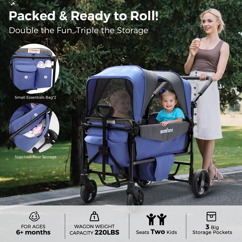 k-absorbing all-terrain wheels, this stroller wagon delivers a smooth, effortless ride on grass, sand, or pavement.