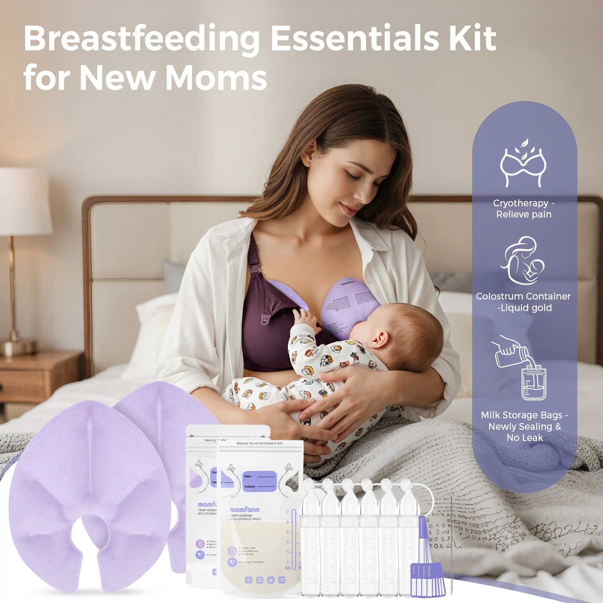 ·ESSENTIALS FOR NEW MOMS - A great baby shower gift, the You’ve Got This Breastfeeding Essentials Kit, moms need to start nursing with confidence,designed for the modern mom's lifestyle .What’s in the Box: 2 x Reusable Hot & Cold Therapy Gel Packs 50 x Pre-Sterilized Breastmilk Storage Bags 6 x Silicone Colostrum Collectors