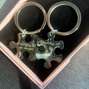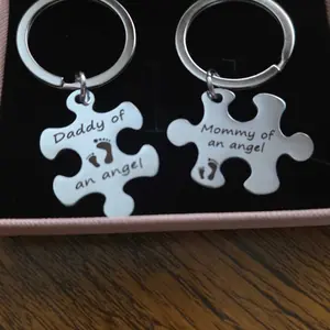 Mommy and Daddy of an Angel Keychains Memorial Puzzle Keyring for Infant Lost Stainless Steel Sympathy Gifts