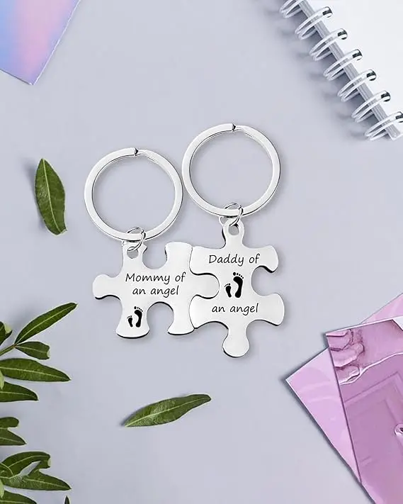 ·Mommy and Daddy of an Angel Keychains: This memorial puzzle keyring is designed for parents of an infant who has passed away. It serves as a poignant sympathy gift. 🌸
