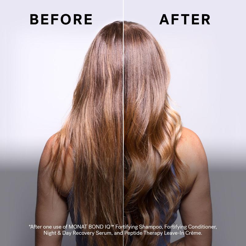 Your hair deserves a second chance, and this shampoo delivers it. From the very first wash, MONAT BOND IQ Fortifying Shampoo leaves hair feeling stronger, smoother, and more manageable. It helps reduce breakage, boosts shine, tames frizz, and restores softness*. Plus, it’s microbiome-friendly, pH-optimized, and safe for daily use on all hair types, even color-treated or chemically processed strands.