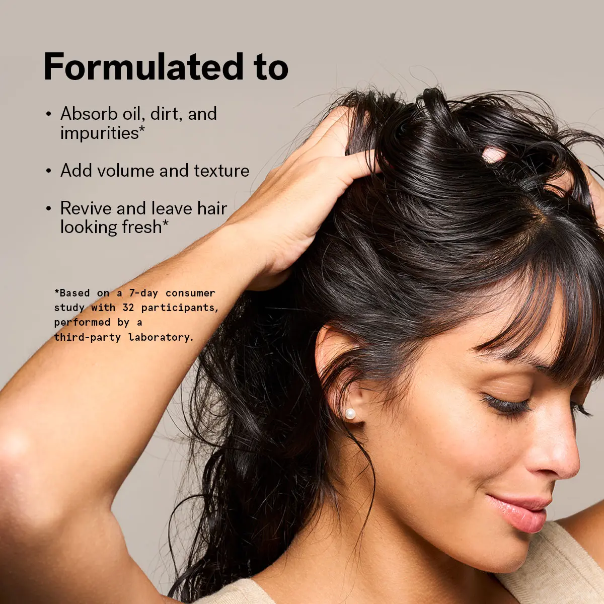 · Dry powder shampoo with micro-fine rice starch absorbs impurities to extend styles on non-wash days