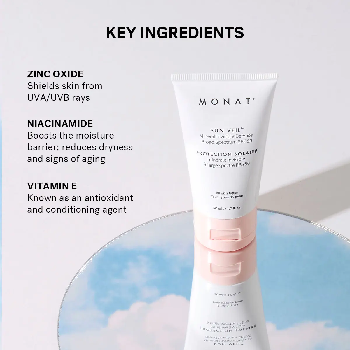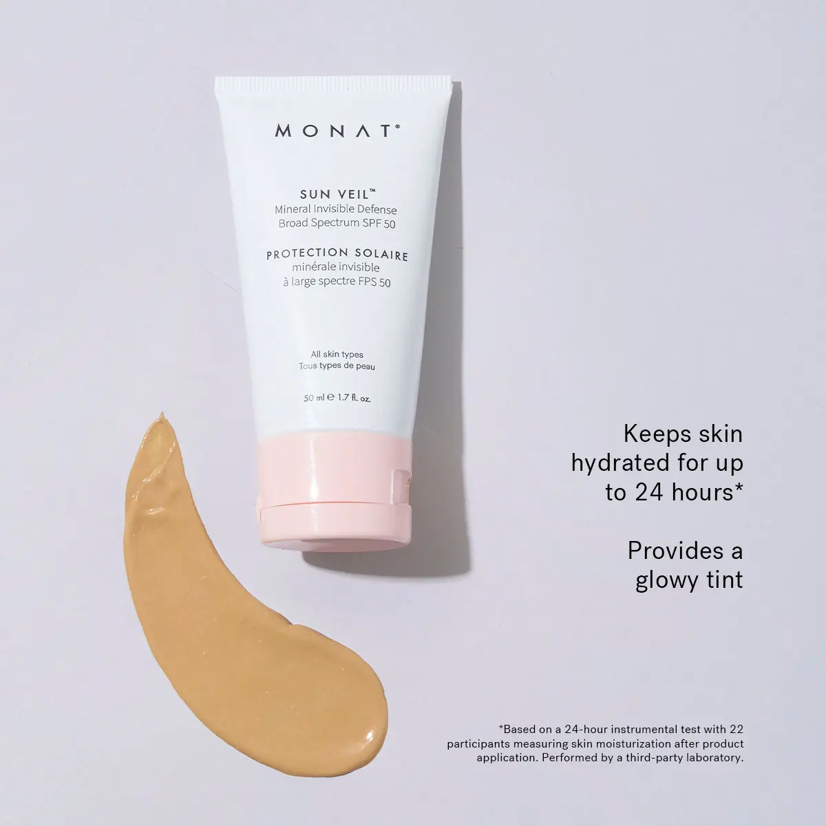 Meet the NEW Sun Veil! Formulated with a lightweight, 100% mineral sunscreen active and a slight tint, it blends into the skin, creating an invisible veil. The SPF 50 formula is hydrating and nourishing with antioxidant properties for the ultimate protection.