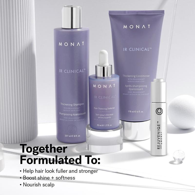 The IR CLINICAL System is a complete regimen that features a unique blend of ingredients that helps strengthen and thicken hair while also preventing damage from brushing and combing. Achieve thicker, fuller-looking hair in 60 days!