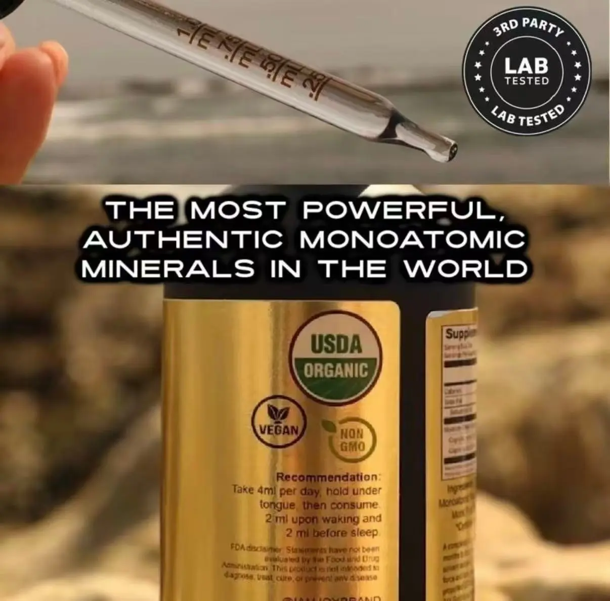IngredientsColloidal 24K Gold, Monatomic Minerals, Dead Sea Salt, Monk Fruit, MCT Coconut Oil