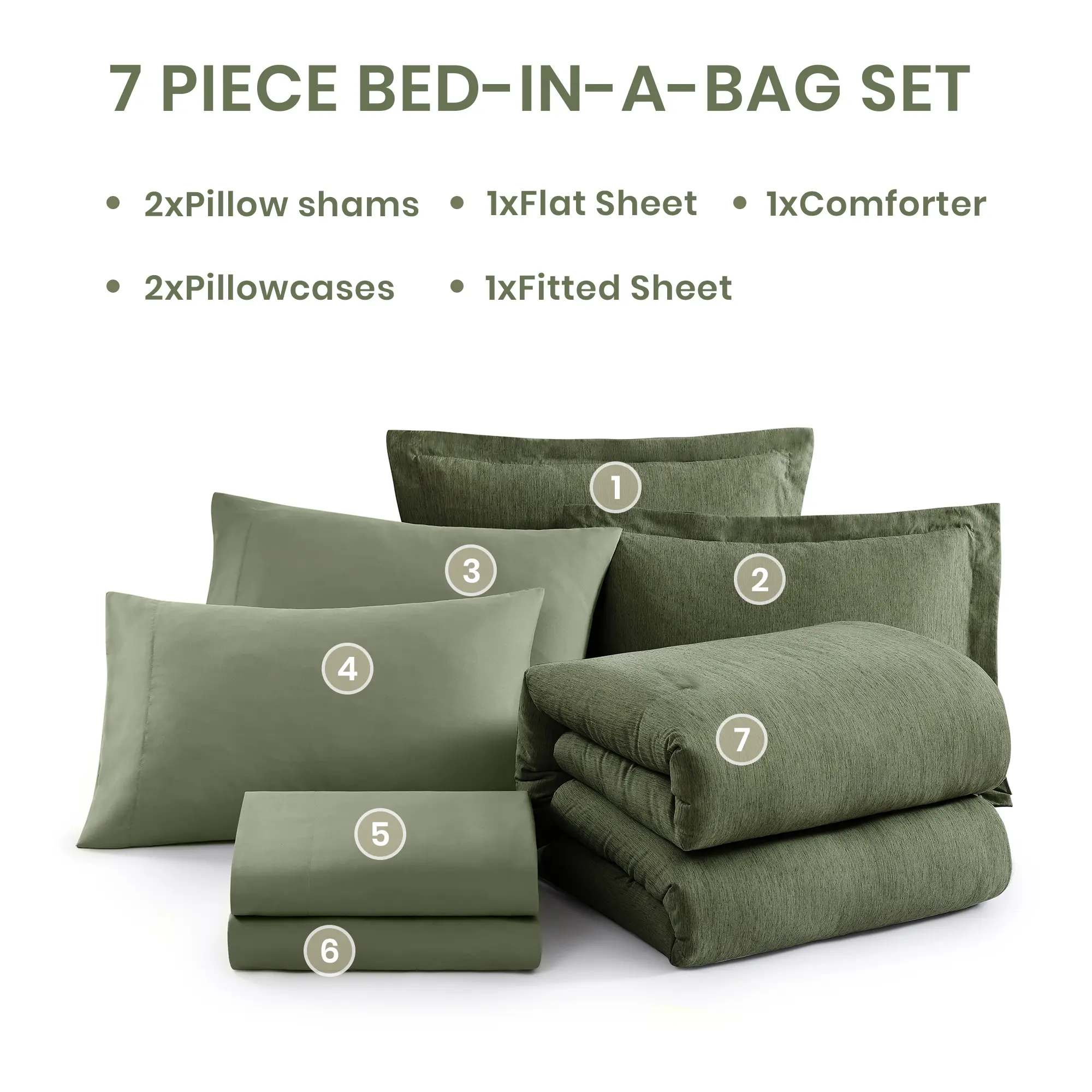 Olive Green, 7Piece-Queen(90”X90'')