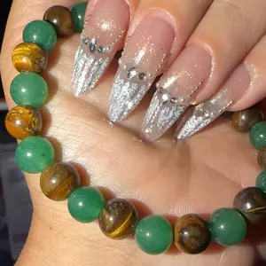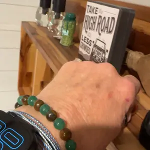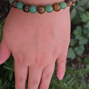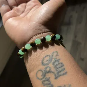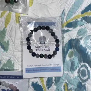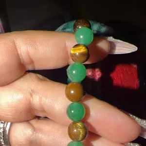 I love this bracelet let’s see if it does that money thing i affirm that I will have money in some time I am patiently waiting and am spiritual and I love the colors it was cold to the touch so they are real stones not plastic or glass I want other colors soon!!