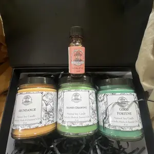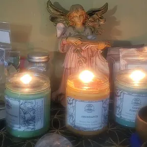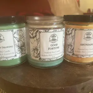 Our Money Drawing Candle Spell Set contains three of our most popular Money and Prosperity related candles: Money Drawing, Abundance & Good Fortune. It’s perfect when seeking to improve money-related intentions such as financial security, greater income, freedom from debt, business growth, better employment, good luck, new opportunities, cash in the bank, promotions, and an overall increase in your financial position. Each Candle is blended with a variety of herbs and essential oils that are revered for their ability to promote a greater flow of abundance and prosperity. Each Candle is made from all-natural soy wax and comes in an 8 oz. glass jar.