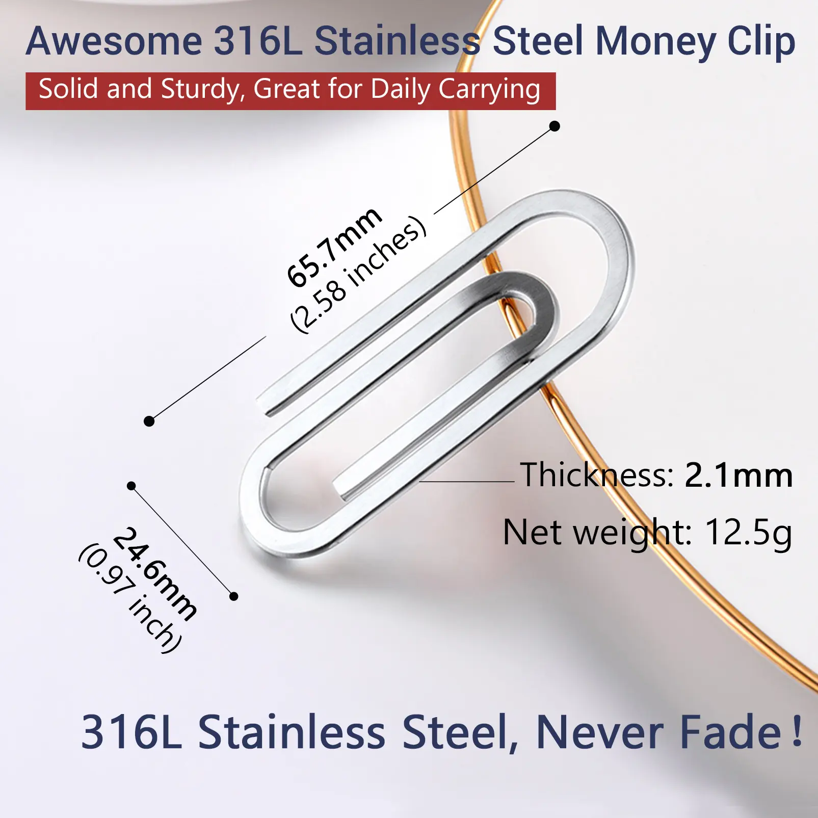 PROSTEEL Paperclip Money Clips Stainless Steel Slim Front Wallets Clip Jewelry Unisex For Men Women with Gift Box