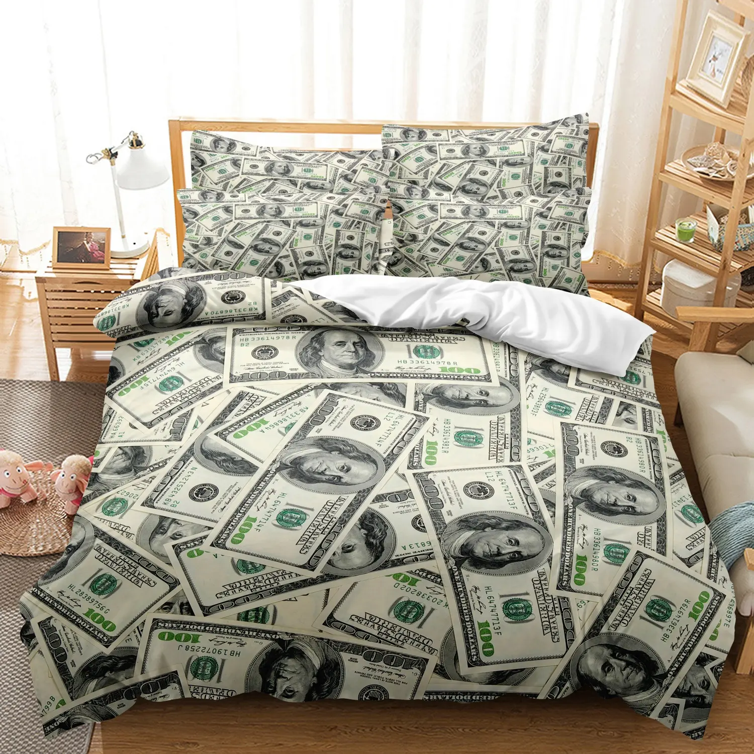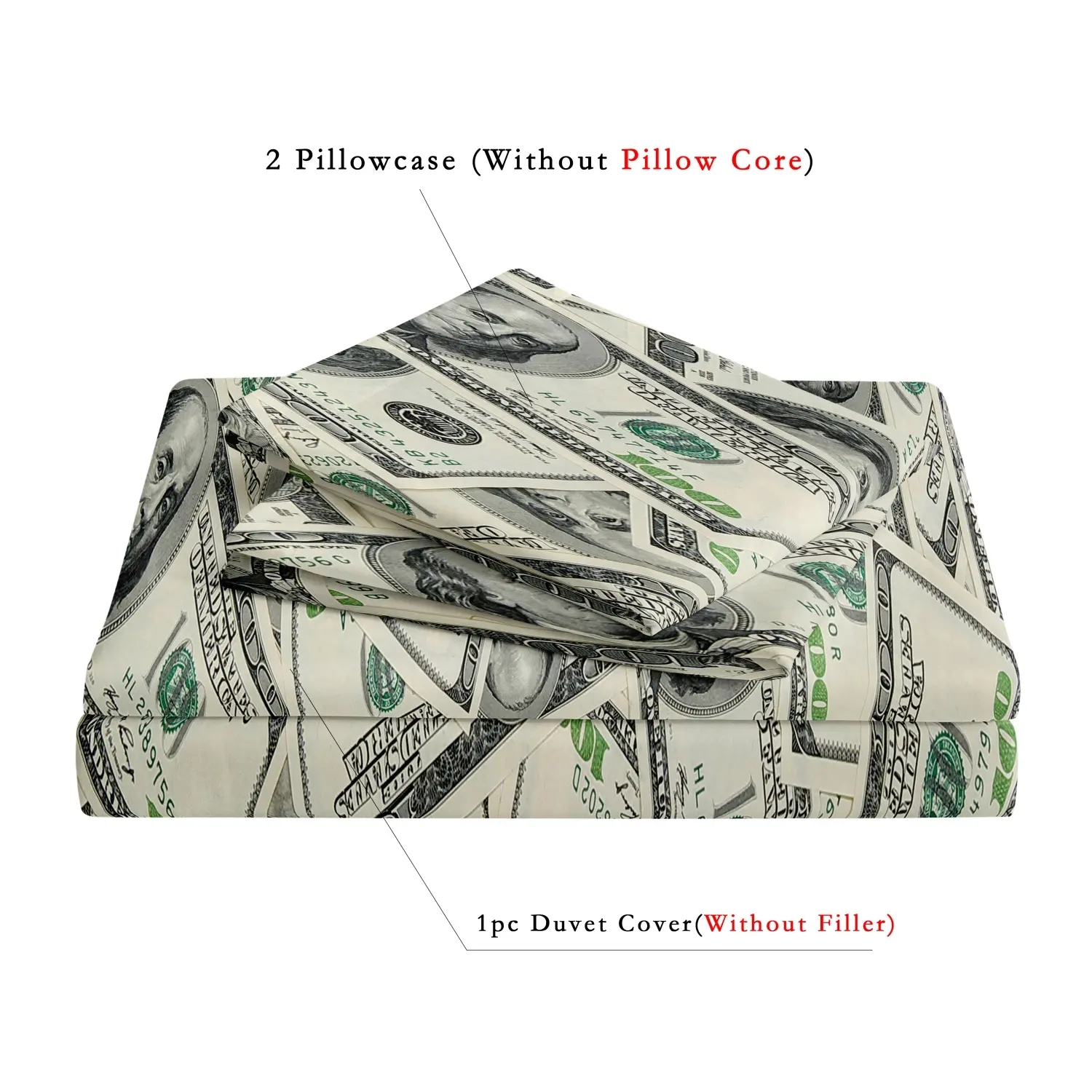Money Pattern Bedding Set, 3 Counts Including (1 Count Duvet Cover & 2 Counts Pillowcases,No Core) Soft Comfortable Bedding Set for Bedroom