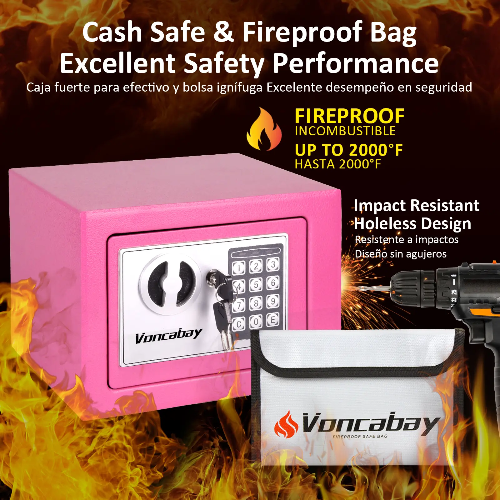 ·[2 Ways to Unlock the Money Safe Box]: Voncabay Small Money Safe has 2 unlock ways: 1) insert the Emergency Backup Keys into the mini safe and turn left, then turn entry knob clockwise to open the personal safe box; 2) use the Numeric Keyboard to enter the password followed by "E", then turn the knob clockwise to open. Our security box offers Security Lockout System: if an incorrect password is entered three times in a row, the digital keypad will begin a five-minute security lockout period.