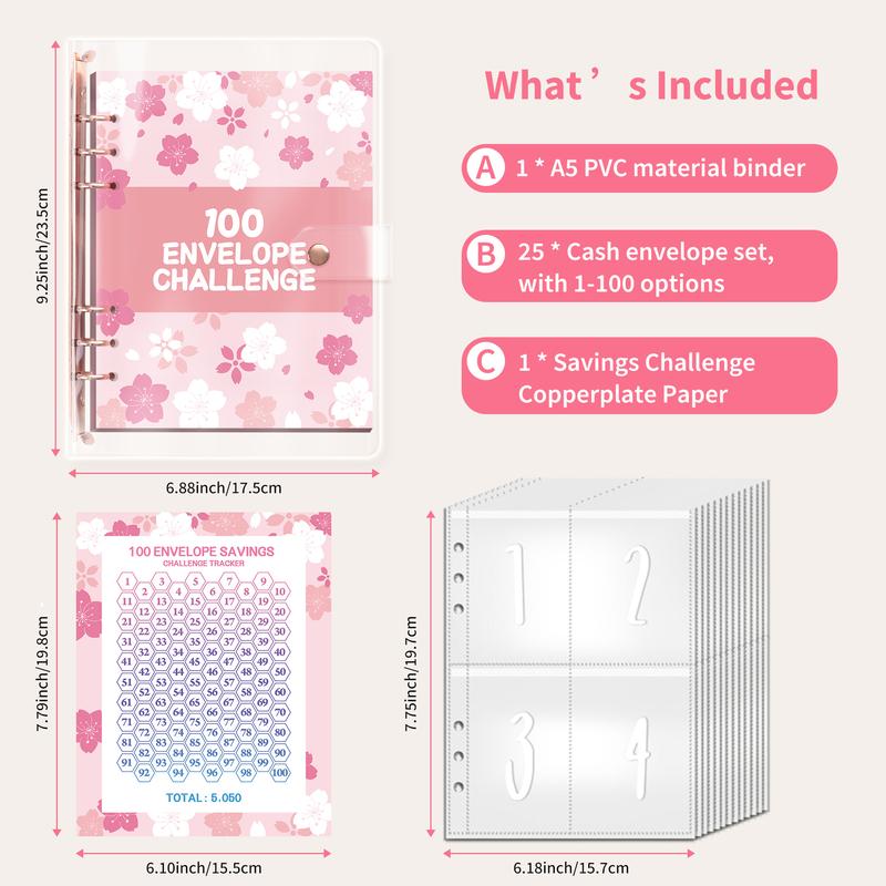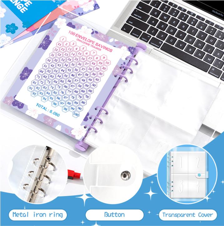 Organize your finances with this 100-pack money saving challenge binder, designed to help you stay on track with your budget and savings goals.