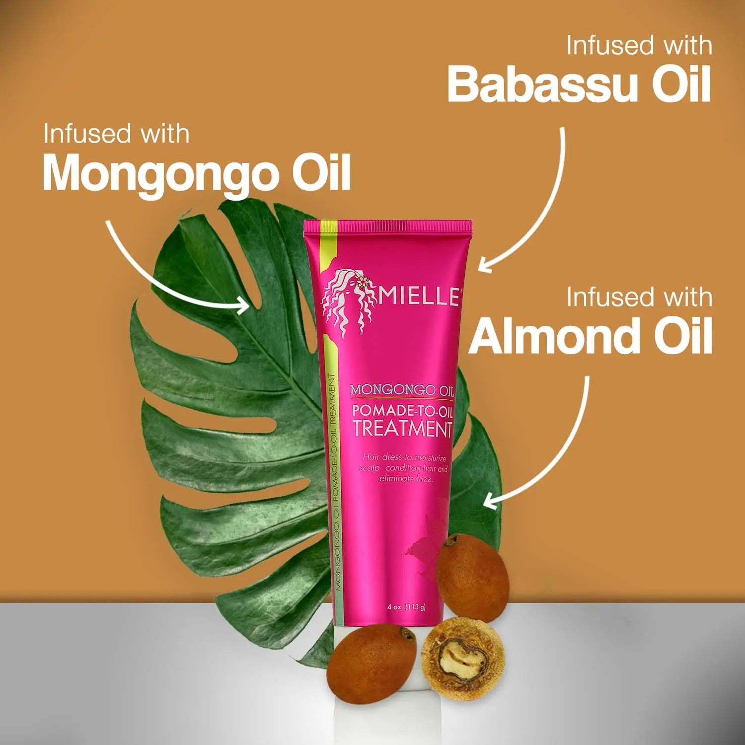 This Mongongo Oil Pomade-To-Oil Treatment combines enriched ingredients such as almond oil, safflower oil and beeswax to fight frizz and create soft, sleek styles with impeccable shine.
