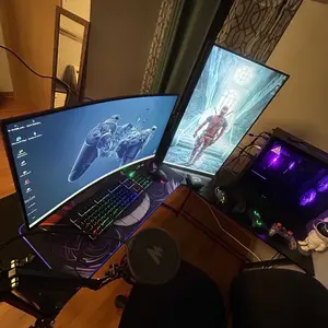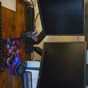 dont mind the game loadout, bad i know. that aside these monitor arms are honestly amazing, ive always had issues with my monitor stands before so this was an amazing purchase. im just slightly disappointed that the arms cant go lower than you see them in the photos, only nitpick i have.