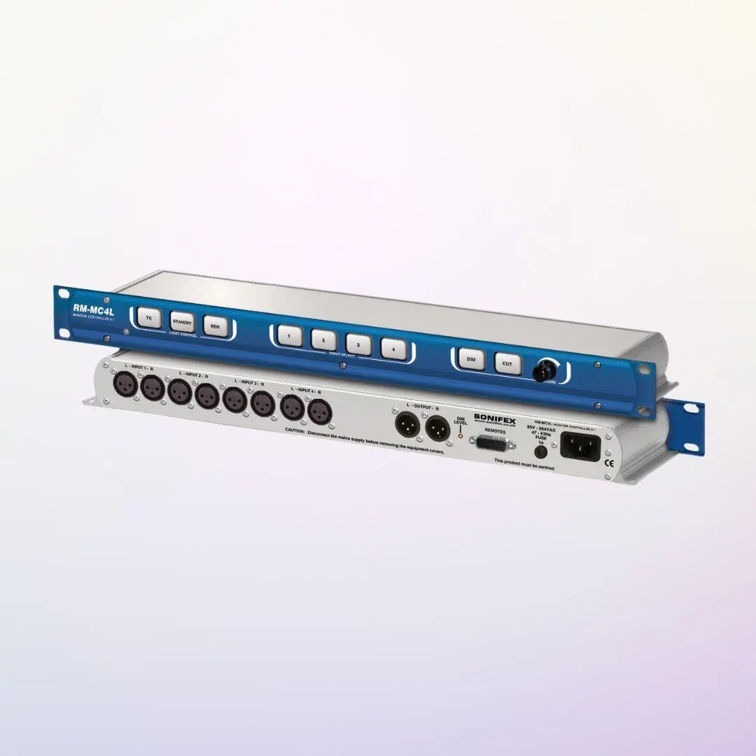 The Sonifex RM-MC4L Monitor Controller makes managing multiple audio sources simple and smooth. With four easy-to-select channels, a single output, and light-up buttons for quick control, this unit keeps your studio workflow clean and easy. Whether you're switching between mixes or setting the mood with lighting, it’s designed to keep your hands on the sound and your focus on the work.