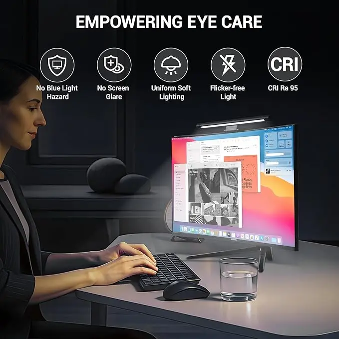 【No Screen Glare & Flicker-Free】 Different from traditional lamp, computer monitor light adopts asymmetric optical and Anti-Blue Light design, which can effectively avoid screen glare.