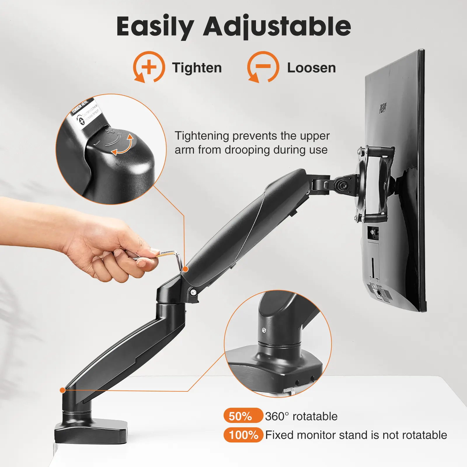 Single( Support 15 to 27 Inch, 4.4 to 15.4 LBS), Black