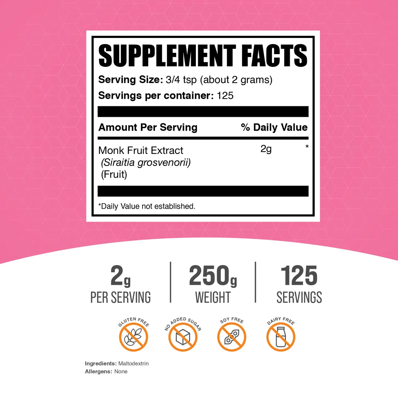 Antioxidant: Monk Fruit Extract contains antioxidants that help protect cells from damage caused by free radicals, supporting overall health and well-being.