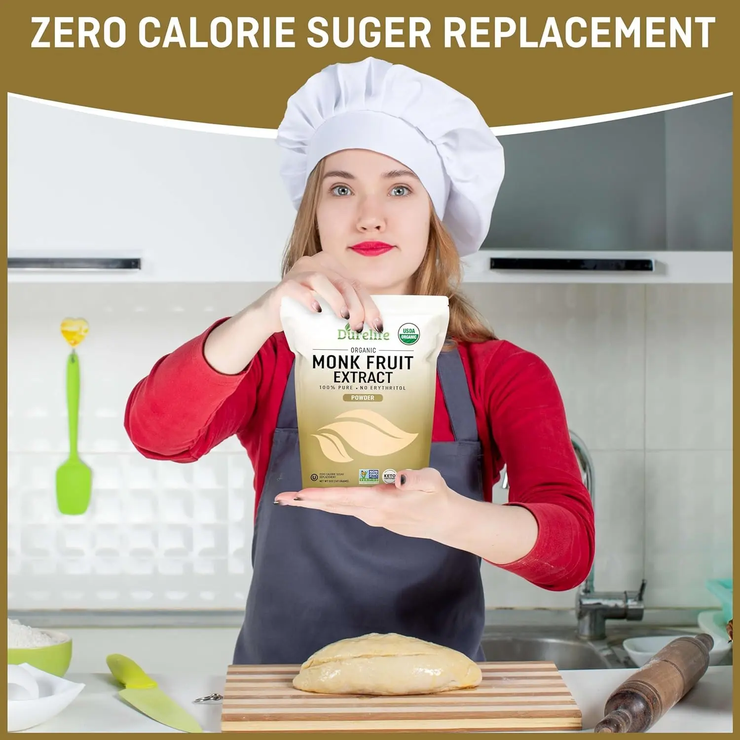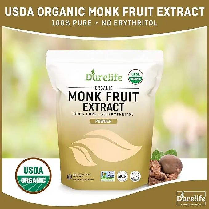 ·Durelife USDA Certified Organic Monk Fruit: Durelife's organic monk fruit sweetener has been approved by the US Department or agriculture as organic, and it is made exclusively from monkfruit, This guarantees that the product is completely free from additives, fillers, and GMOs, adhering to the strictest organic standards.