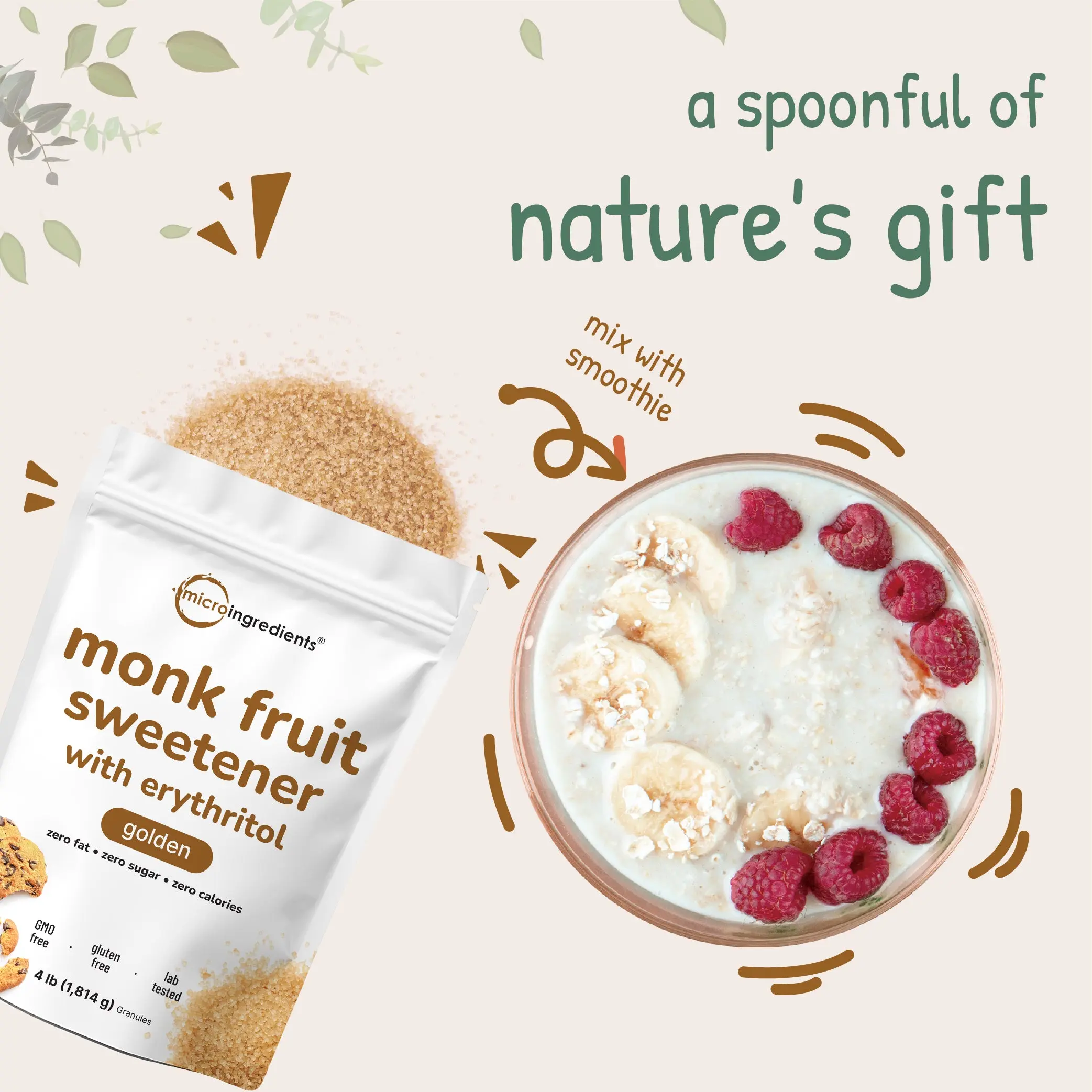 Monk fruit sweetener with erythritol es muy buena porque tiene cero azucar y cero calorias