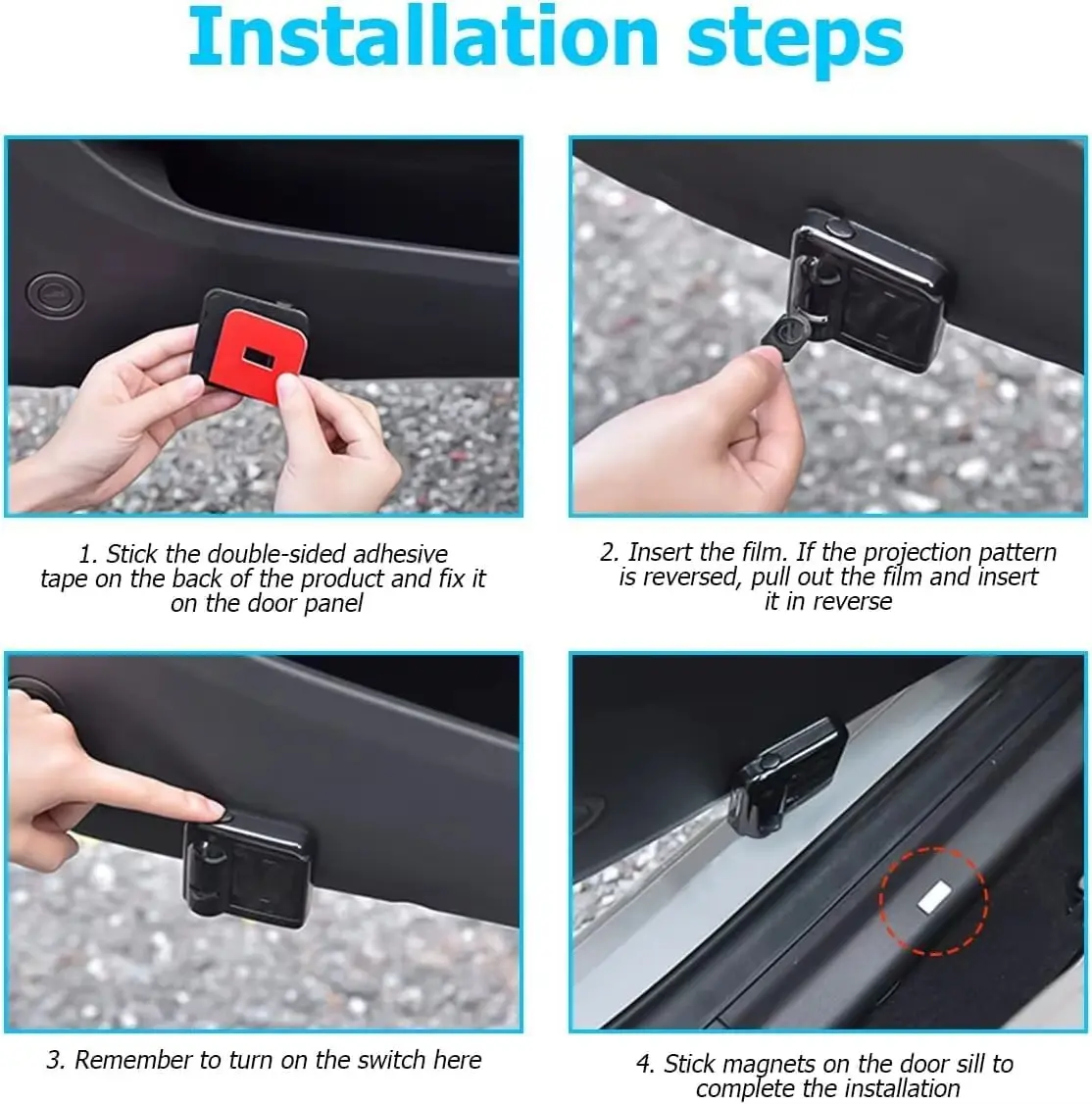 Using infrared sensing stickers for docking, the door will not light up when the light is strong during the day, and the light will automatically light up when the door is opened at night