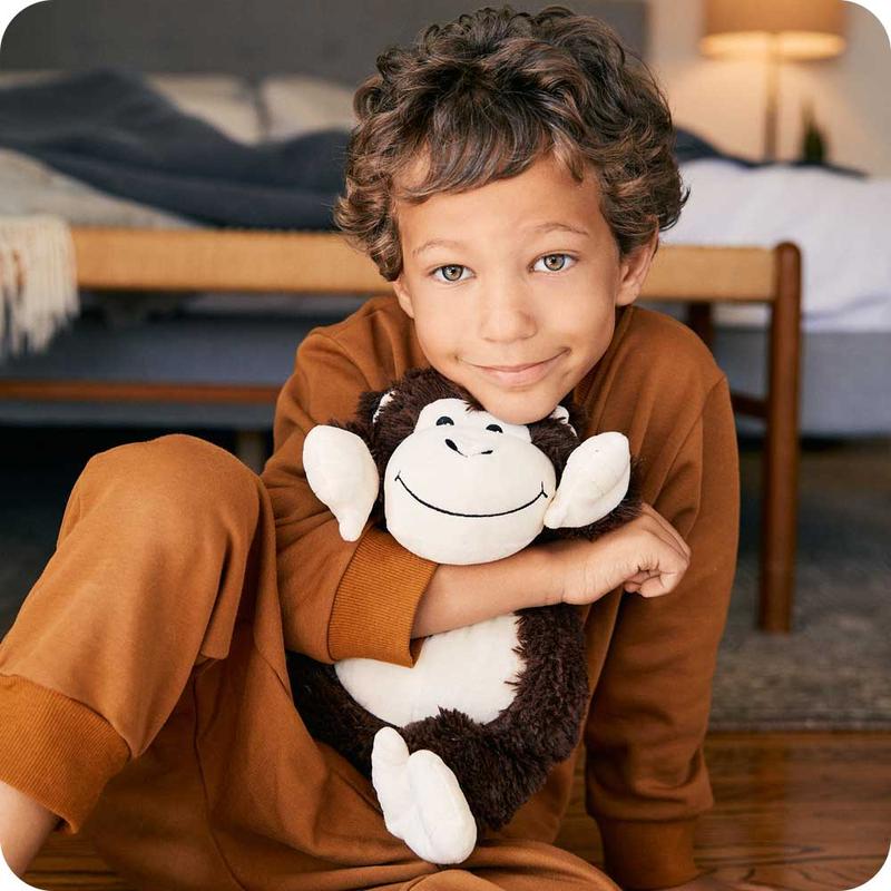 Swing into snuggles with Monkey Warmies! Fully heatable for soothing relief, gently weighted to melt away stress and lavender-scented for relaxation, this playful pal makes winding down fun.