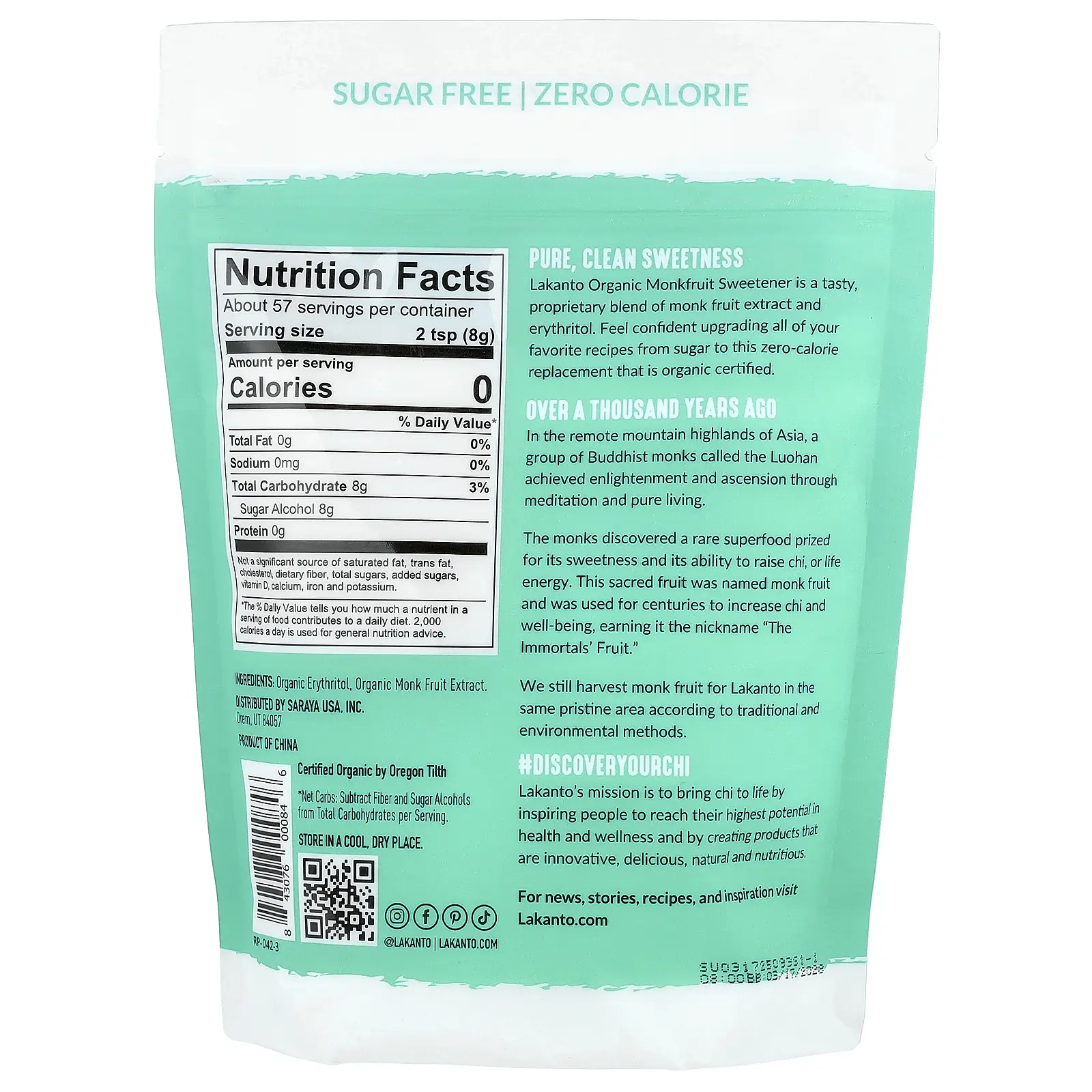 IngredientsOrganic erythritol, organic monk fruit