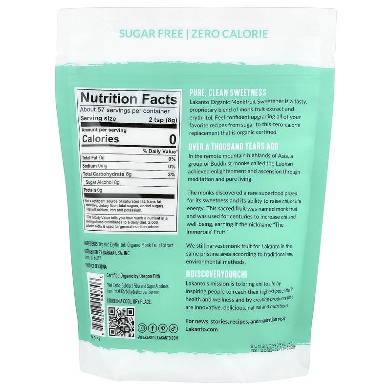 Lakanto Organic Monkfruit Sweetener, 1 lb (454 g)