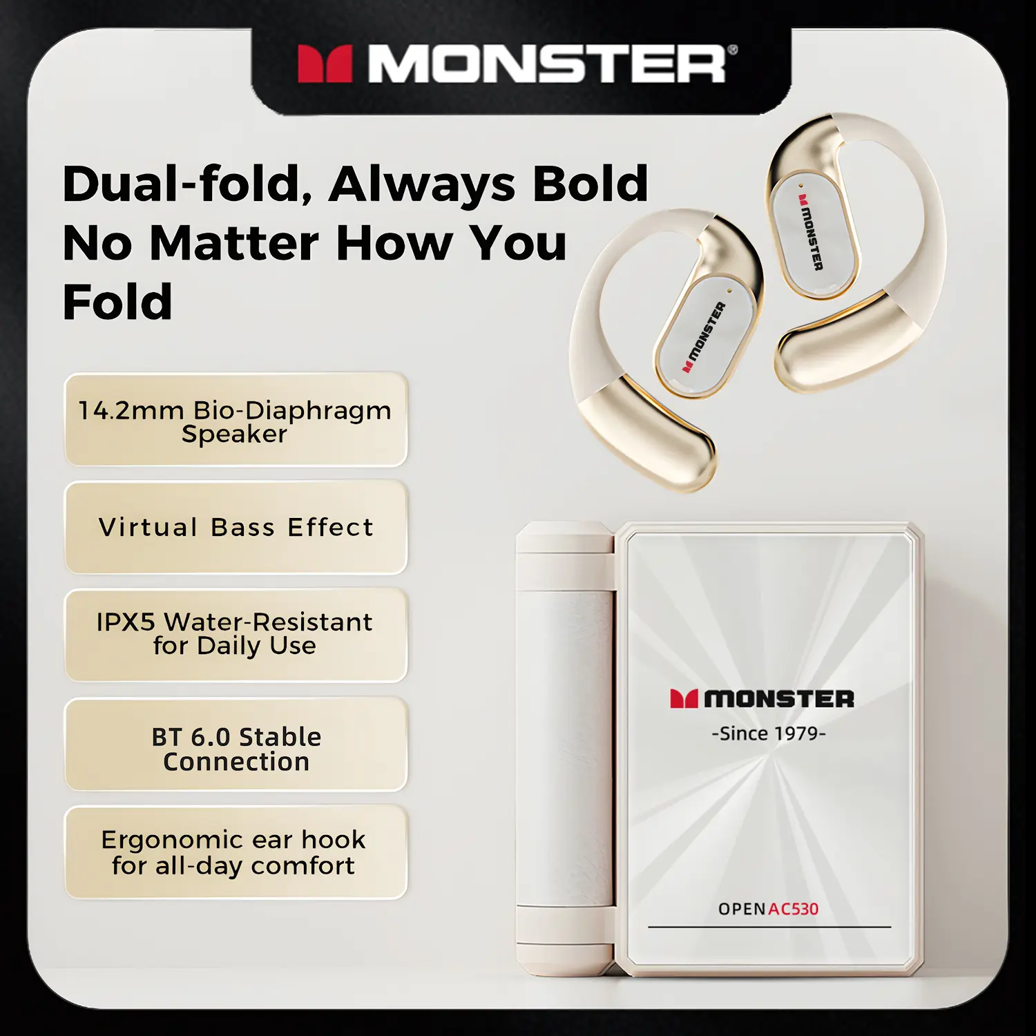 I am blown away by the quality and sound of this ear open ear Bluetooth. I also have a Bose ear bud but this one takes the cake. I love that it is over the ear and not the ones that you put into your ear- ear bud. The price is awesome for this quality product. The case it came in is really nice.