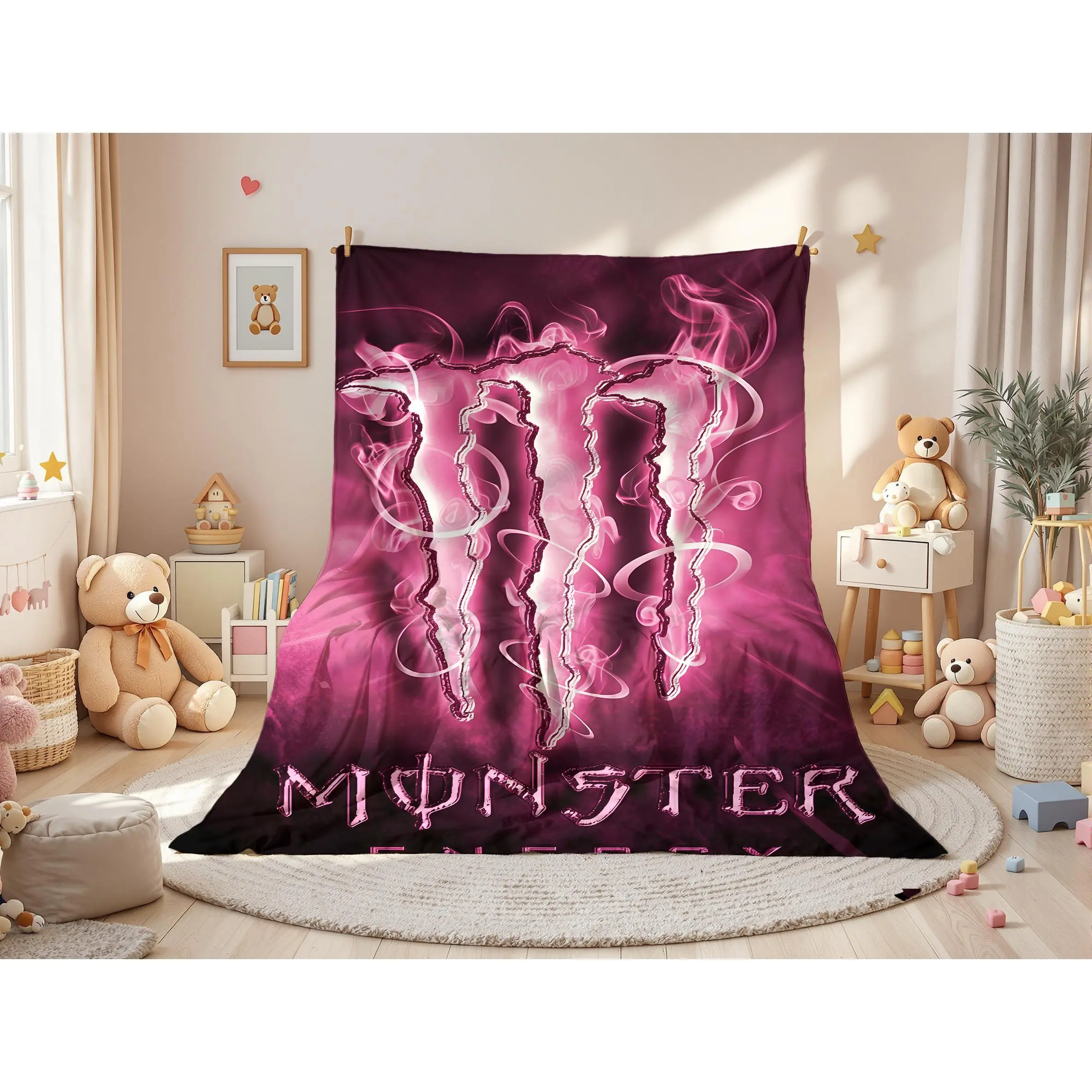 Monster Energy Pink Claw Logo Pattern Blanket,Neon Pink Smoke Energy Drink Plush Throw Blanket,Soft Warm Napping Blanket for Home Office Travel Camping