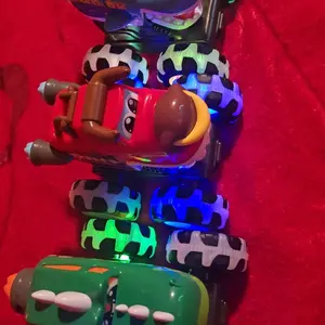 ·Vibrant light-up monster trucks with bright wheels