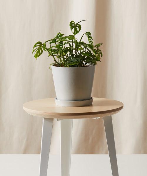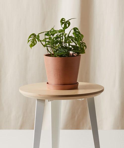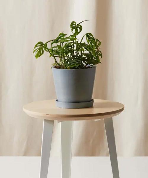 Monstera Adansonii is a low-maintenance plant with dramatic leaves adorned with fenestrations, or holes. As vining plants, these plants trail over the pot and can climb along a stake or trellis.
