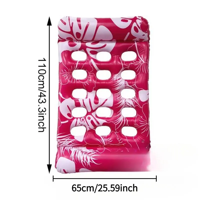 Monstera Leaf Design Inflatable Pool Hole Lounge Float, Foldable Striped Floating Bed, Water Hammock & Single Recliner Float, Ideal for Travel, Family Pool, Vacation, Beach & Sunbathing