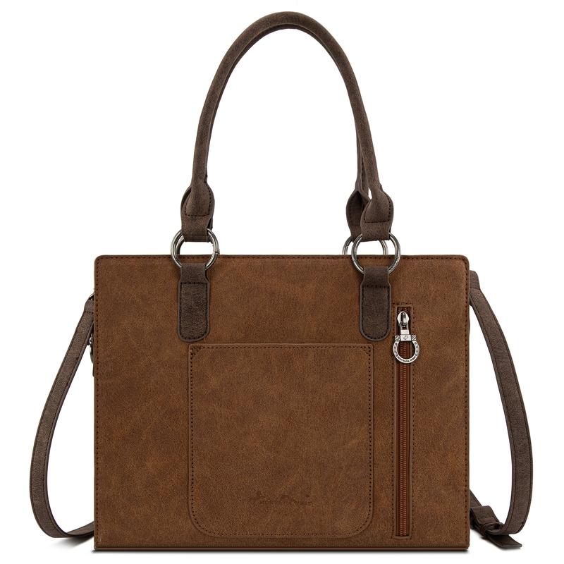 The Montana West Western Crossbody/Shoulder Tote is ideal for women seeking a high-capacity bag for daily commutes. This tote offers ample space with dimensions of 12.4*5*10 inches, making it perfect for carrying essentials.