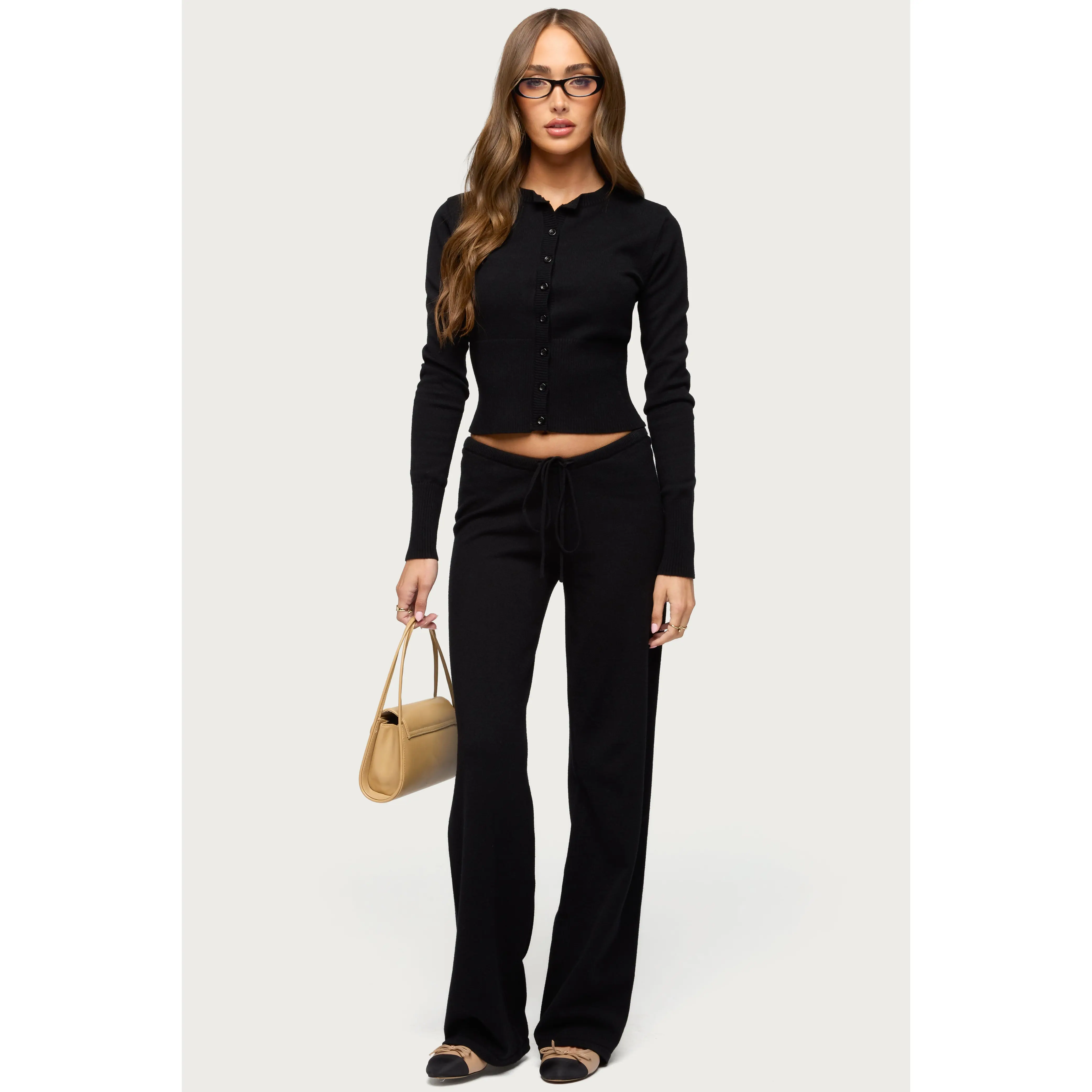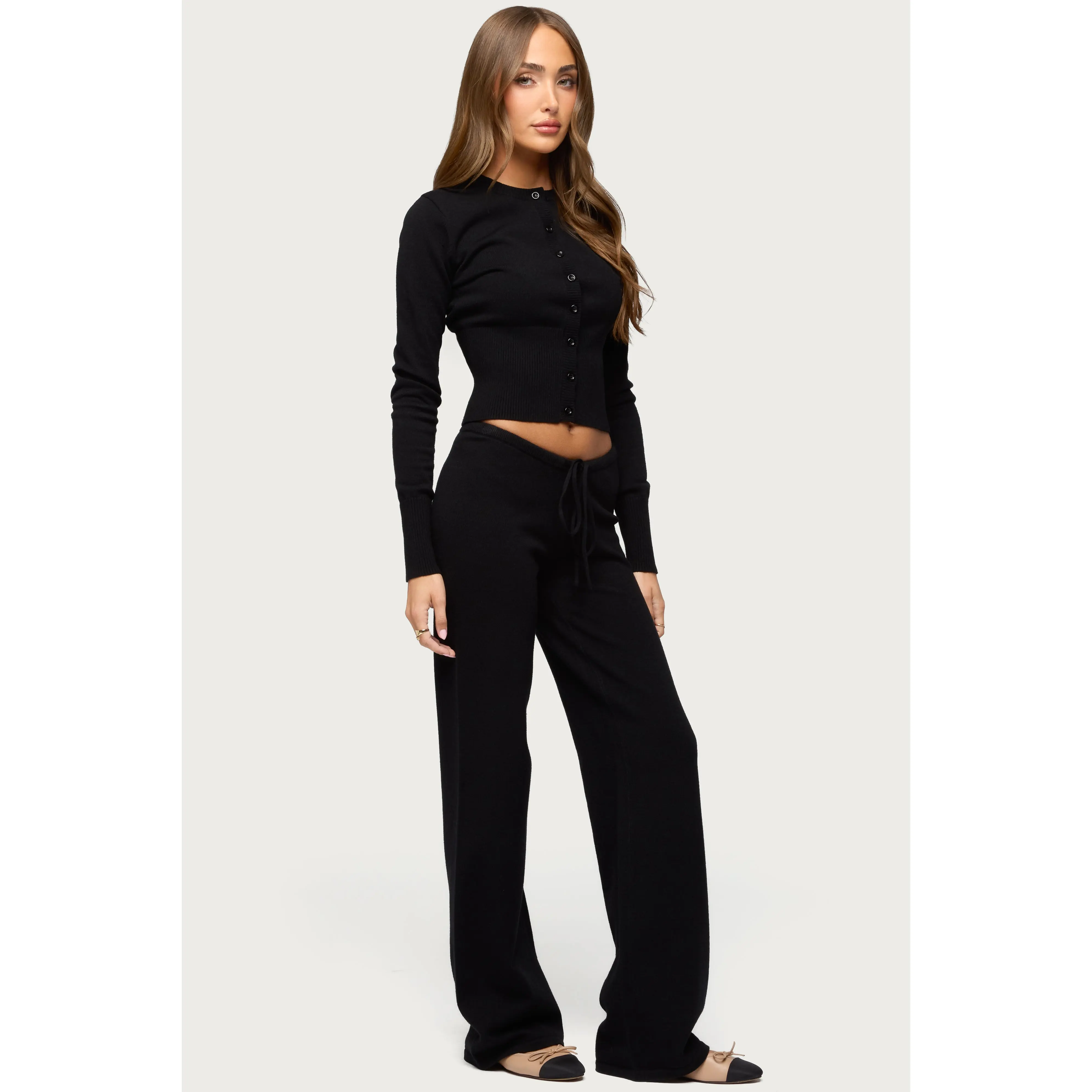 I’m 5’7 wearing XS! 50% OFF these Edikted Montanna Knit Pants. 🖤 Soft knit fabric Adjustable tie waist Wide leg fit Matching set option So comfy but still looks put together. @Edikted  #edikted #knitpants #matchingset #loungewearstyle #casualchic  cannot guarantee sale price will remain $34 past day of posting (2/24/26)
