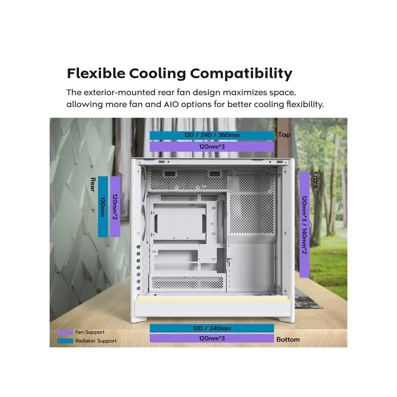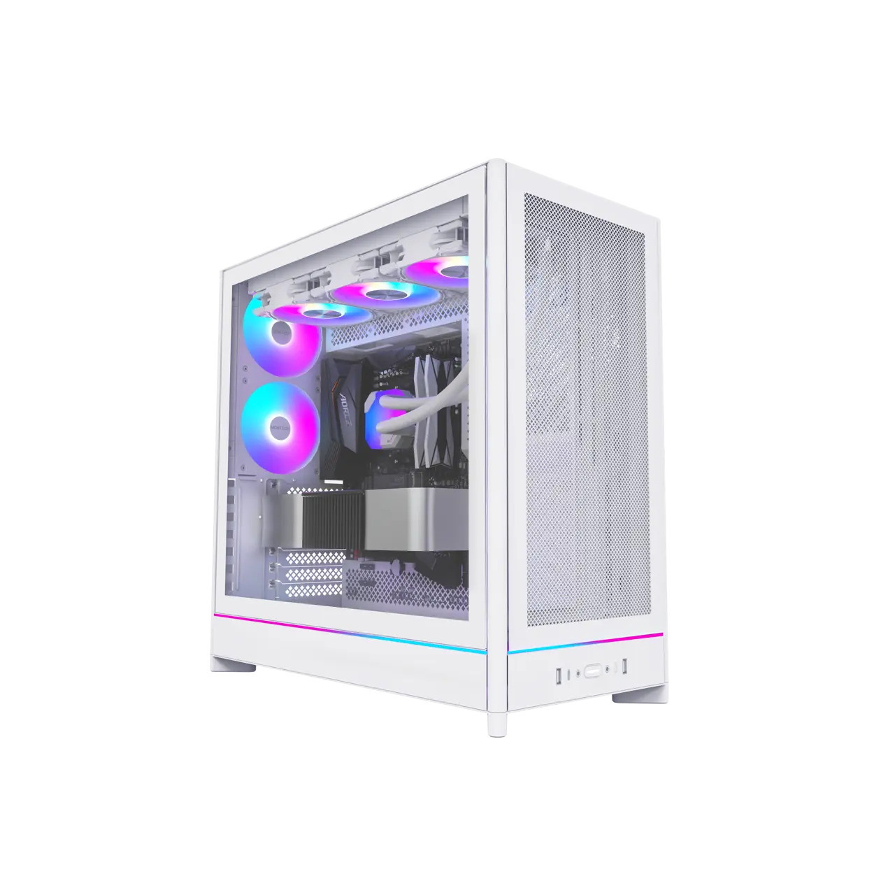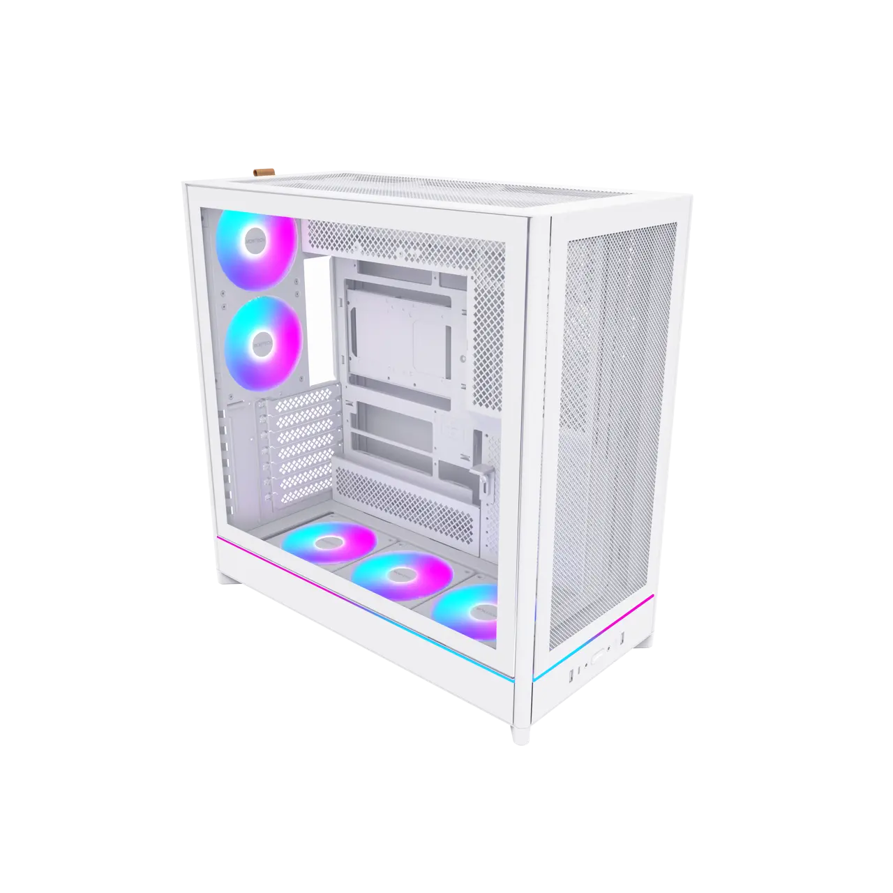 5. MONTECH HS01 PRO, ATX Mid-Tower PC Case, Gaming PC, High-Airflow, Reversible Layout, Mesh Front Panel, 5x ARGB PWM Fan Pre-Installed, Sink-in Design, Toolless Panels, White