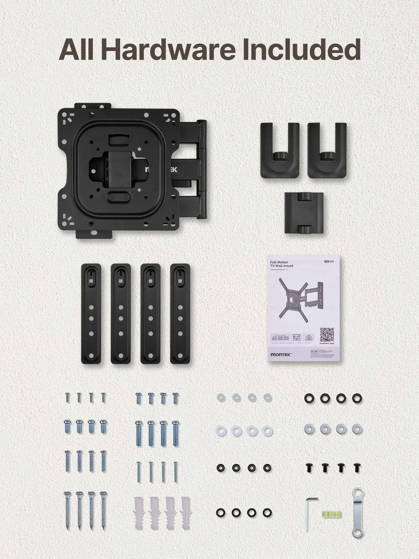 ·Wide CompatibilityFits most 23–65" flat/curved TVs & monitors up to 77 lbs, VESA 75x75–400x400mm. Works with wood studs, concrete, and brick walls (not drywall alone).