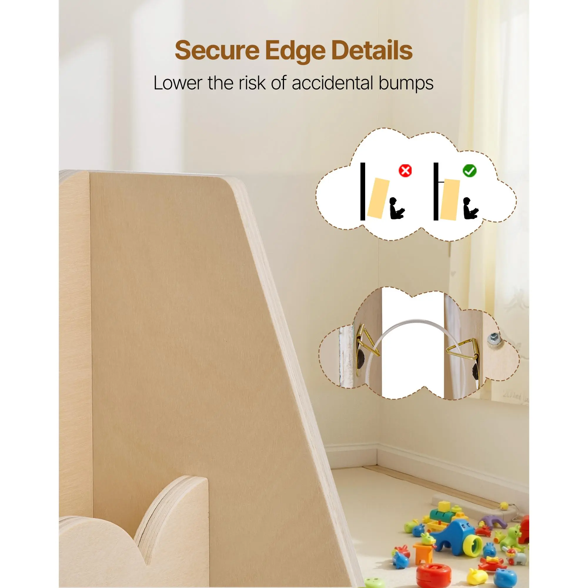 • Caring, Secure Design: Built for durability and reliability. This scalloped bookcase includes an anti-tip kit and rounded edges design to help avoid tipping during use, providing extra peace of mind for parents