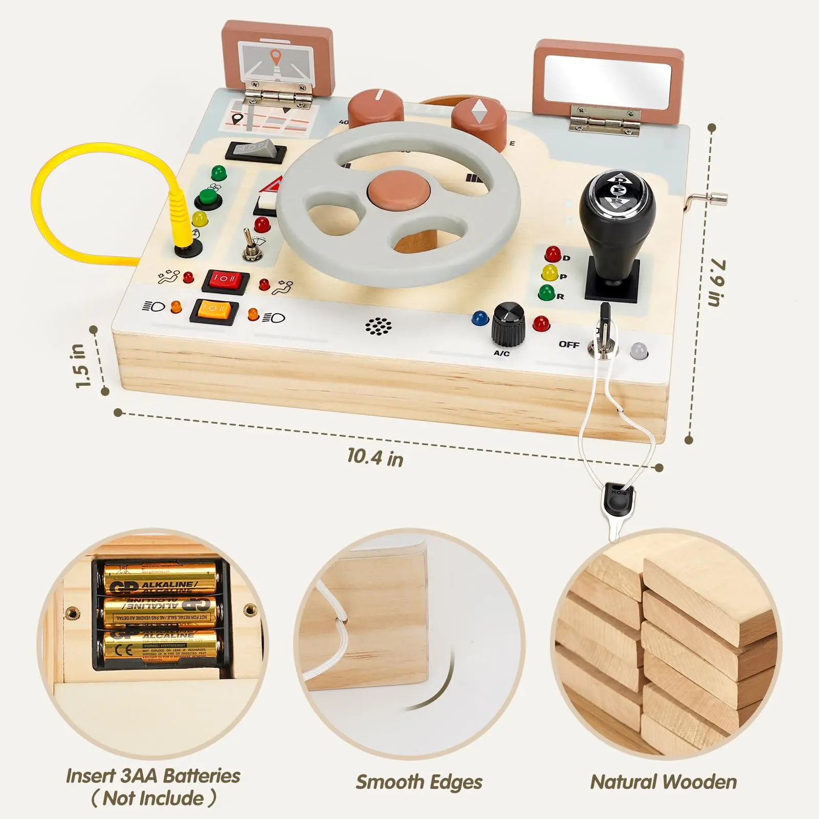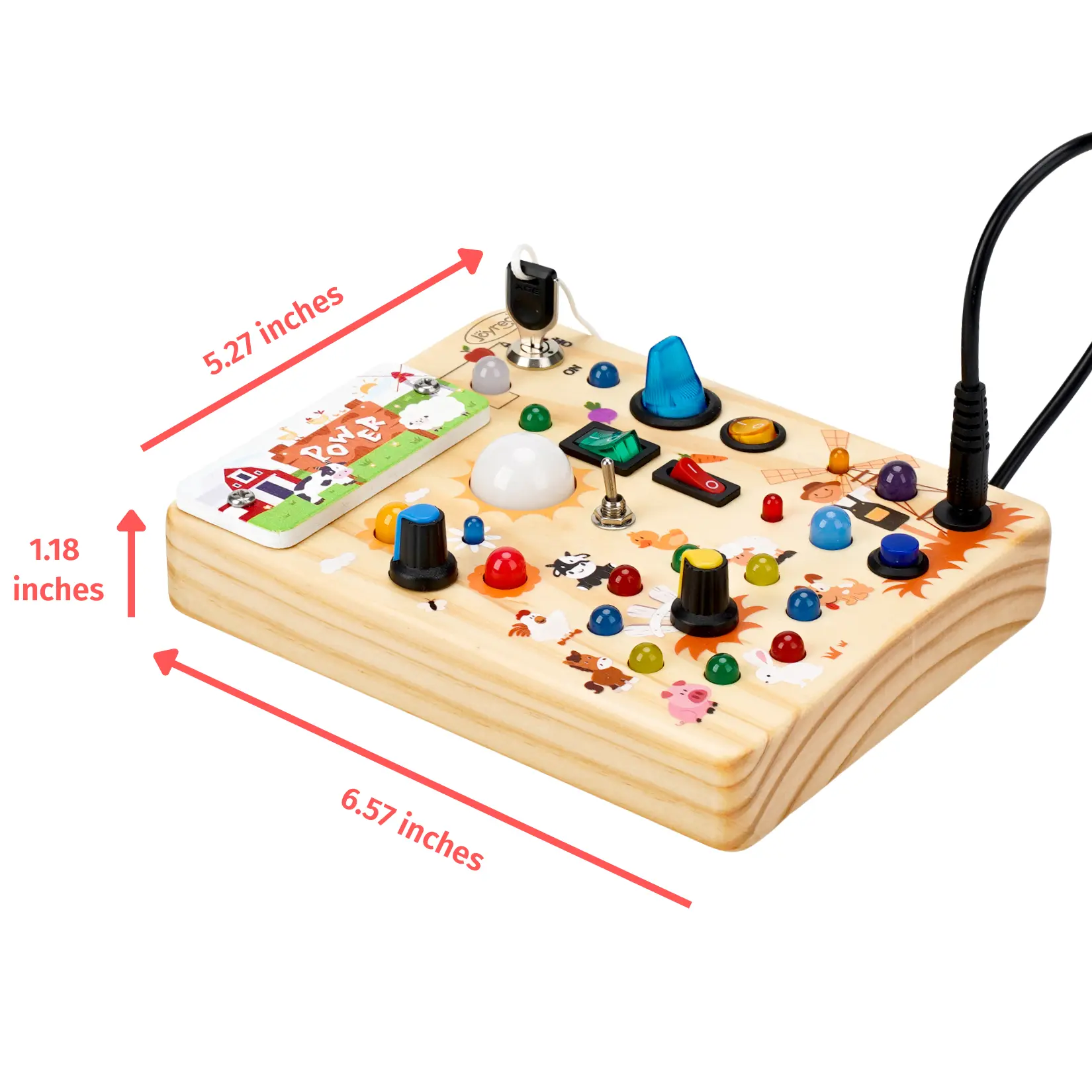 What a great introduction to a ine year old on so many important switches and tools, colors, actions, etc… way to go! Also the size is great for a toddler to hold and maneuver